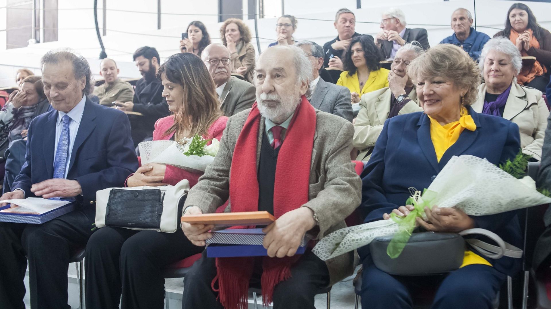 La ceremonia de homenaje tuvo lugar en la nueva sede del Instituto de Sociología, en Blas Cuevas, y fue encabezada por la directora de la unidad académica, Sonia Reyes, y el decano de la Facultad de Humanidades, Leopoldo Benavides; asistieron asimismo el prorrector, Christian Corvalán; el secretario general, Osvaldo Corrales, y el vicerrector académico, José Miguel Salazar. Junto a ellos estuvieron presentes las esposas de los homenajeados, miembros de la comunidad de la Facultad de Humanidades, amigos y familiares.