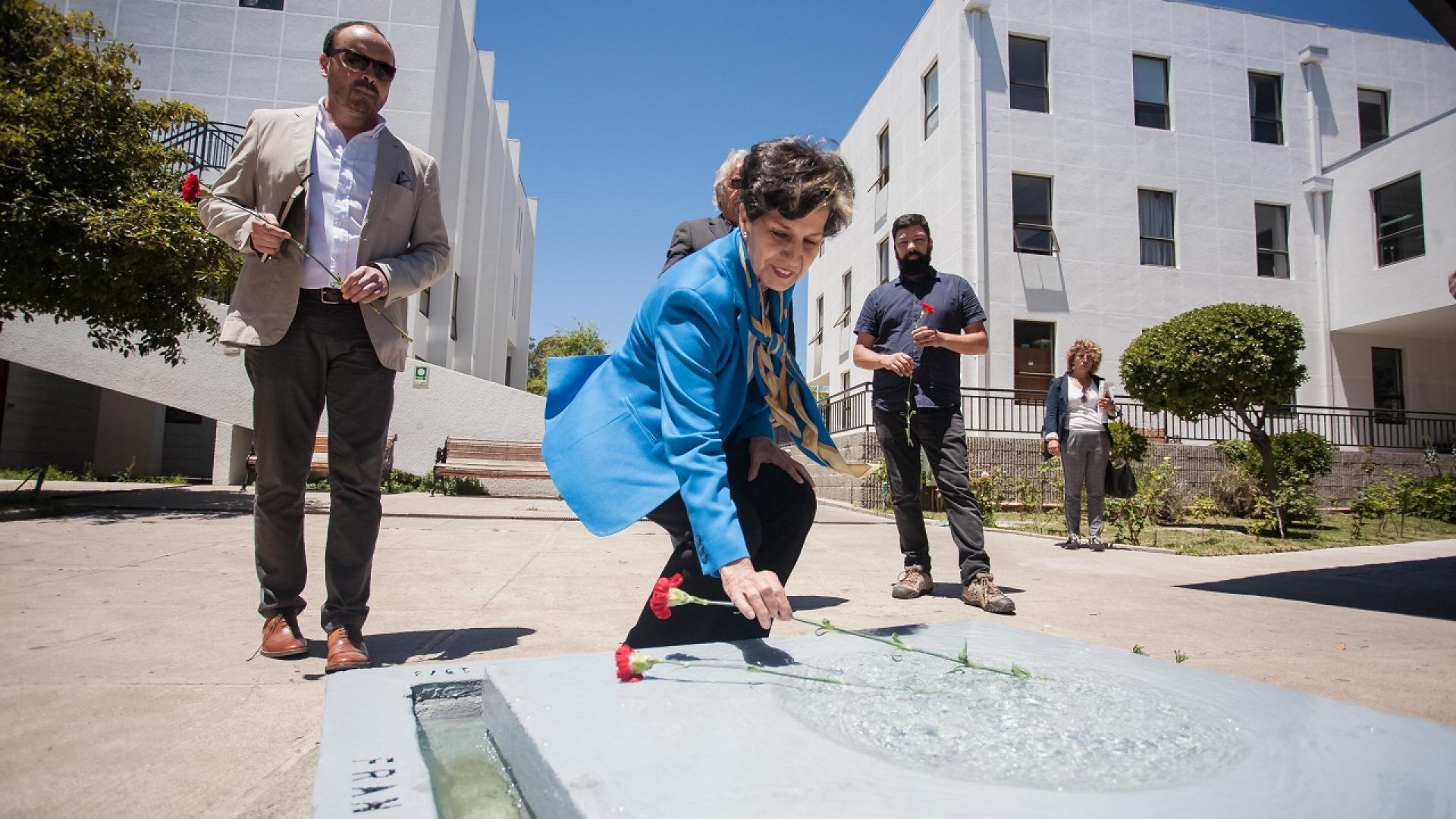 La visita de la senadora finalizó con un recorrido al memorial de los egresados de la Escuela de Arquitectura UV Carlos Gajardo Wolff y Yactong Juantok Guzmán, y del profesor de la misma escuela Francisco Aedo Carrasco, todos detenidos desaparecidos. En la ocasión, la parlamentaria junto a los profesores y el decano depositó una clavel roja en el lugar (en la foto), mientras recibía el afectuoso saludo de un grupo de alumnas que se acercaron para conocerla e intercambiar opiniones.