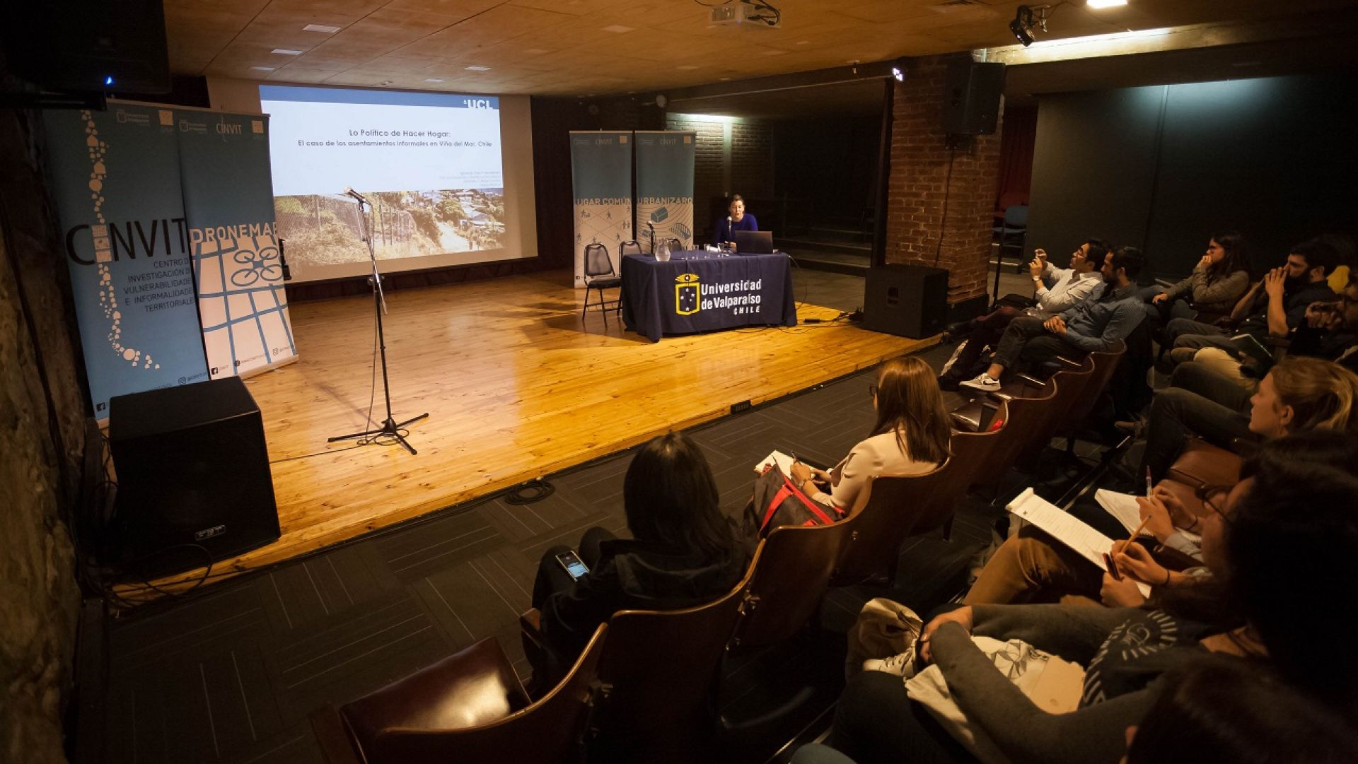Ojeda, que expuso el tema "Procesos de coproducción urbana en asentamientos informales en Valparaíso", señaló que “el CINVIT busca presentar una mirada crítica respecto del desarrollo de la informalidad y cómo se aborda, sobre todo en Chile, donde prima una visión dicotómica, enfocada solo en si se erradica o se radica, mientras que a nivel internacional ya se está hablando de asegurar la tenencia, que significa asegurar la infraestructura urbana por sobre la legalización de un sitio”.