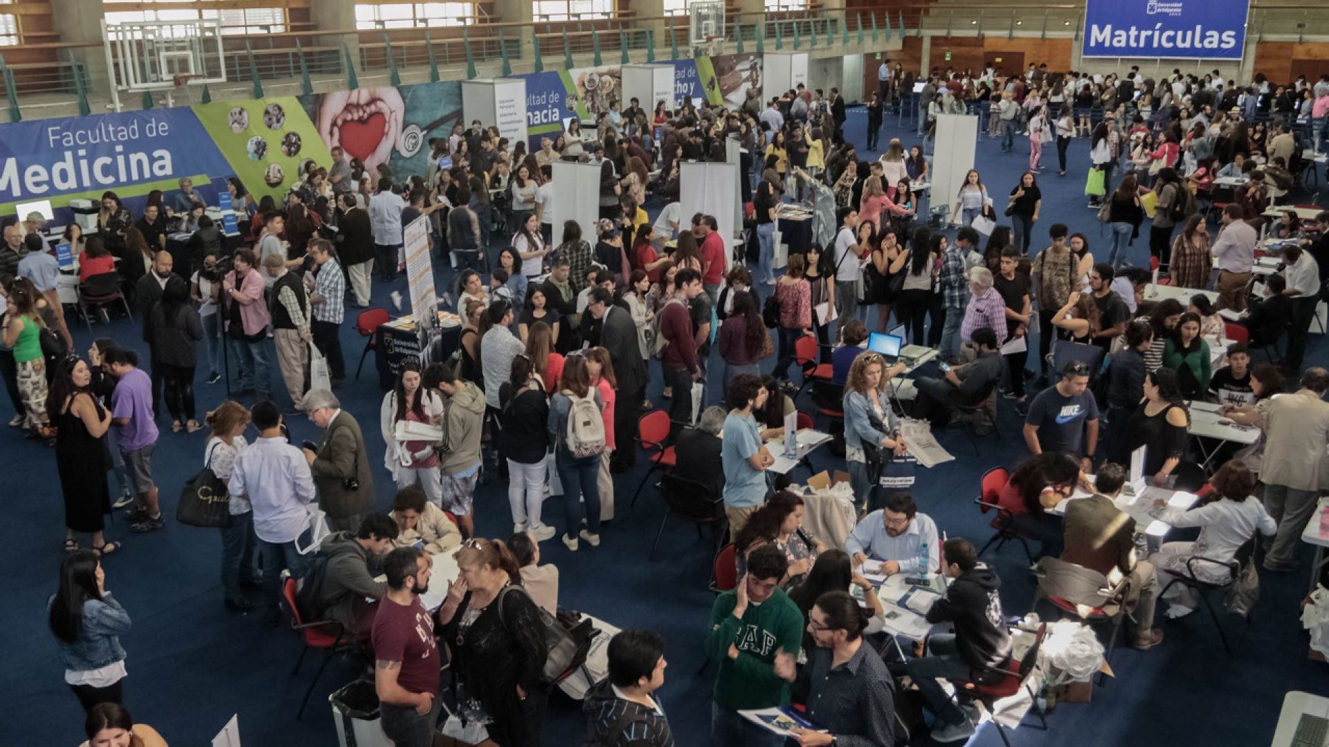 El rector Aldo Valle visitó el Polideportivo de Playa Ancha, donde se desarrolla hasta este jueves el proceso de matrículas, y junto con recorrer las dependencias y saludar a algunos de los nuevos estudiantes, expresó su satisfacción por la alta convocatoria de la UV.