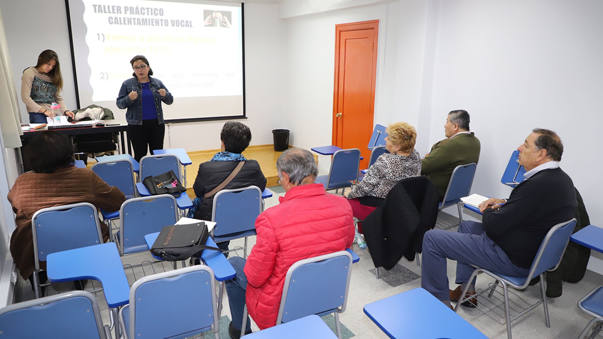“Manejo vocal y habilidades comunicativas” se denomina el taller que las estudiantes de Fonoaudiología Bárbara Verdugo y Josefa Aros imparten a personas mayores en Gerópolis UV, con la supervisión de la académica Cristina Carmona. Por otro lado, desarrollan el taller avanzado de locución radial, junto a las fonoaudiólogas de la UV Ignacia Bórquez y Pilar Cuneo, quienes en 2018 ejecutaron la primera etapa del taller gracias a fondos concursables del PMI Gerópolis.