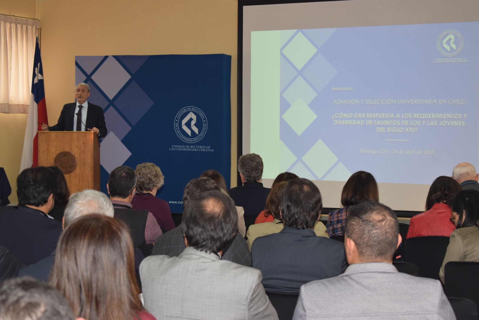 El rector de la Universidad de Valparaíso y vicepresidente ejecutivo del Consejo de Rectores de las Universidades Chilenas (CRUCh), Aldo Valle, inauguró este martes el Seminario “Admisión y selección universitaria en Chile: ¿cómo dar respuesta a los requerimientos y diversidad de talentos de los y las jóvenes del siglo XXI?”, organizado por el Sistema Único de Admisión del CRUCh en conjunto con la Universidad de Los Lagos, en cuya sede de Santiago se llevó a efecto el encuentro.