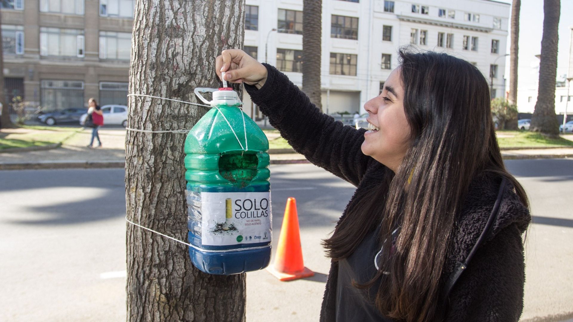 Sobre el diseño de los colilleros, el estudiante agrega que “buscamos diversas soluciones, en un principio pensamos en tarros metálicos para que no se quemaran, pero en Valparaíso es difícil distribuirlos porque la gente los saca y les puede dar otro uso. Llegamos a la conclusión de usar algo que no sirviera a nadie y por eso estamos reutilizando botellas plásticas”.