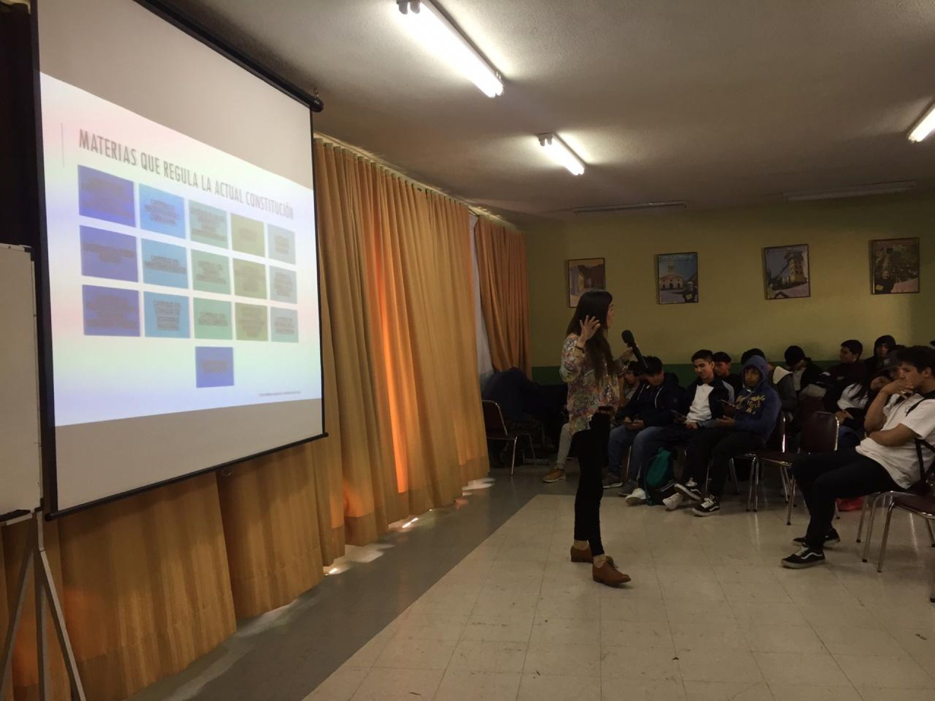 La profesora Fabiola Girão se encargó de exponer respecto de la situación chilena en clave de Derechos Humanos, explicando los tratados internacionales que rigen el país y que es importante tener en la vista, especialmente en contextos de emergencia. Además, era de interés del establecimiento conocer cuáles son los derechos de las personas cuando son detenidas, porque muchos alumnos, apoderados y profesores habían sido parte de la vulneración masiva de los Derechos Humanos en el contexto de manifestaciones pacíficas.