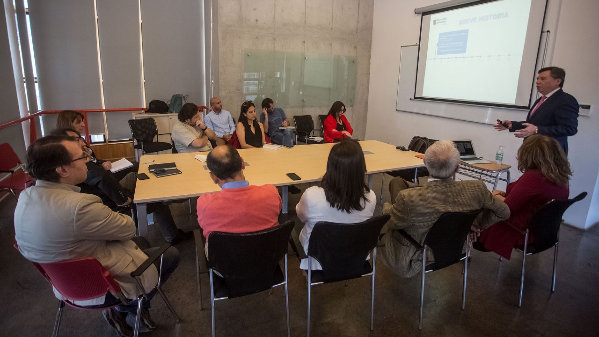 En la presentación, a cargo del doctor Bravo, se realizó un resumen de las acciones realizadas a la fecha, se explicó la utilización de indicadores de evaluación de sustentabilidad utilizados por las más importantes universidades del mundo (proyecto RISU), se describieron las tareas de los comités ejecutivo, consultivo y del futuro comité directivo de la Comisión MAS-UV y se expuso la intención de propender al trabajo en conjunto y articulado con unidades técnicas, académicas, de gestión y planificación institucional.