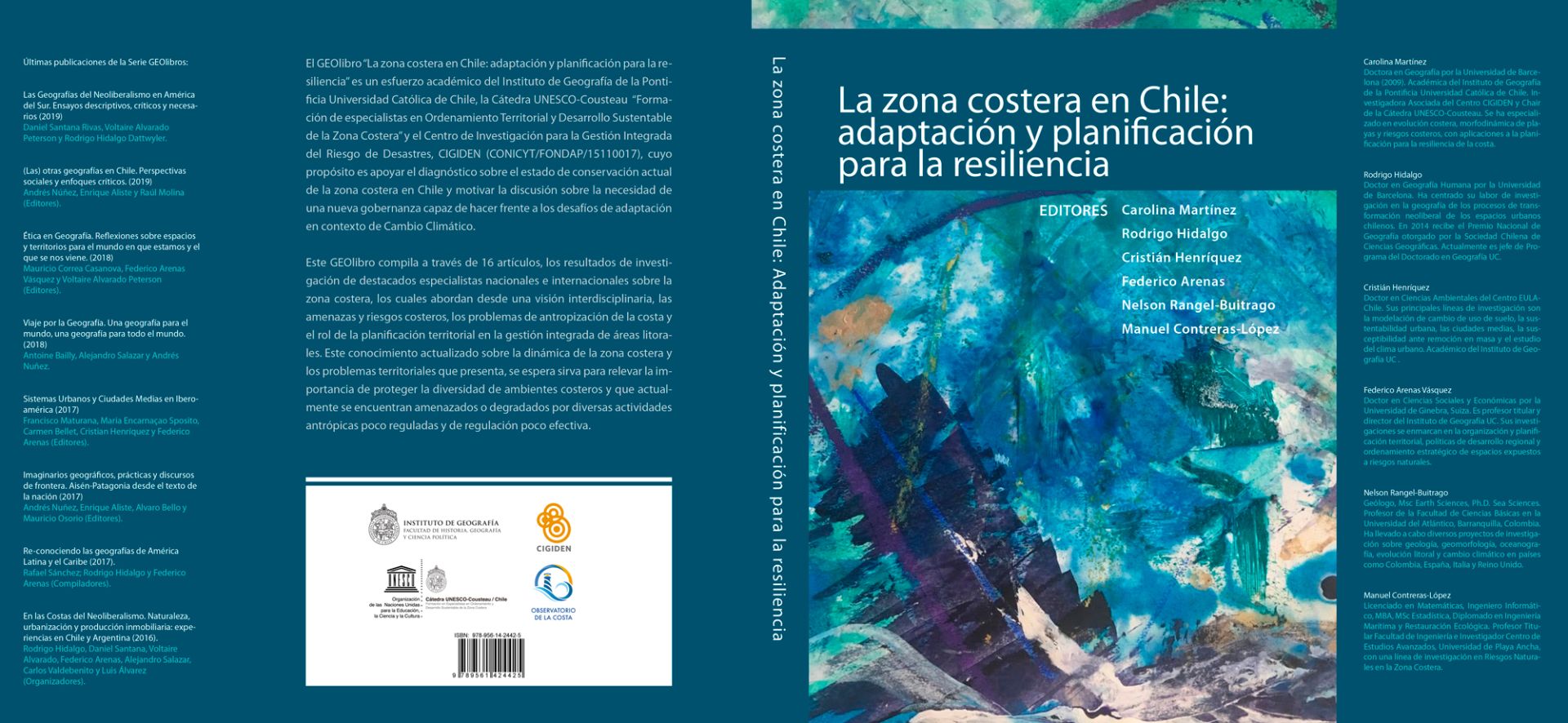 Finalmente, el doctor Soto indicó que la publicación es un esfuerzo académico de importantes instituciones de educación superior y centros de investigación, como el Instituto de Geografía de la PUC, la Cátedra UNESCO-Cousteau “Formación de Especialistas en Ordenamiento Territorial y Desarrollo Sustentable de la Zona Costera” y el Centro de Investigación para la Gestión Integrada del Riesgo de Desastres, CIGIDEN, cuyo propósito es apoyar el diagnóstico sobre el estado de conservación actual de la zona costera en Chile y motivar la discusión sobre la necesidad de una nueva gobernanza capaz de hacer frente a los desafíos de adaptación en contexto de cambio climático.