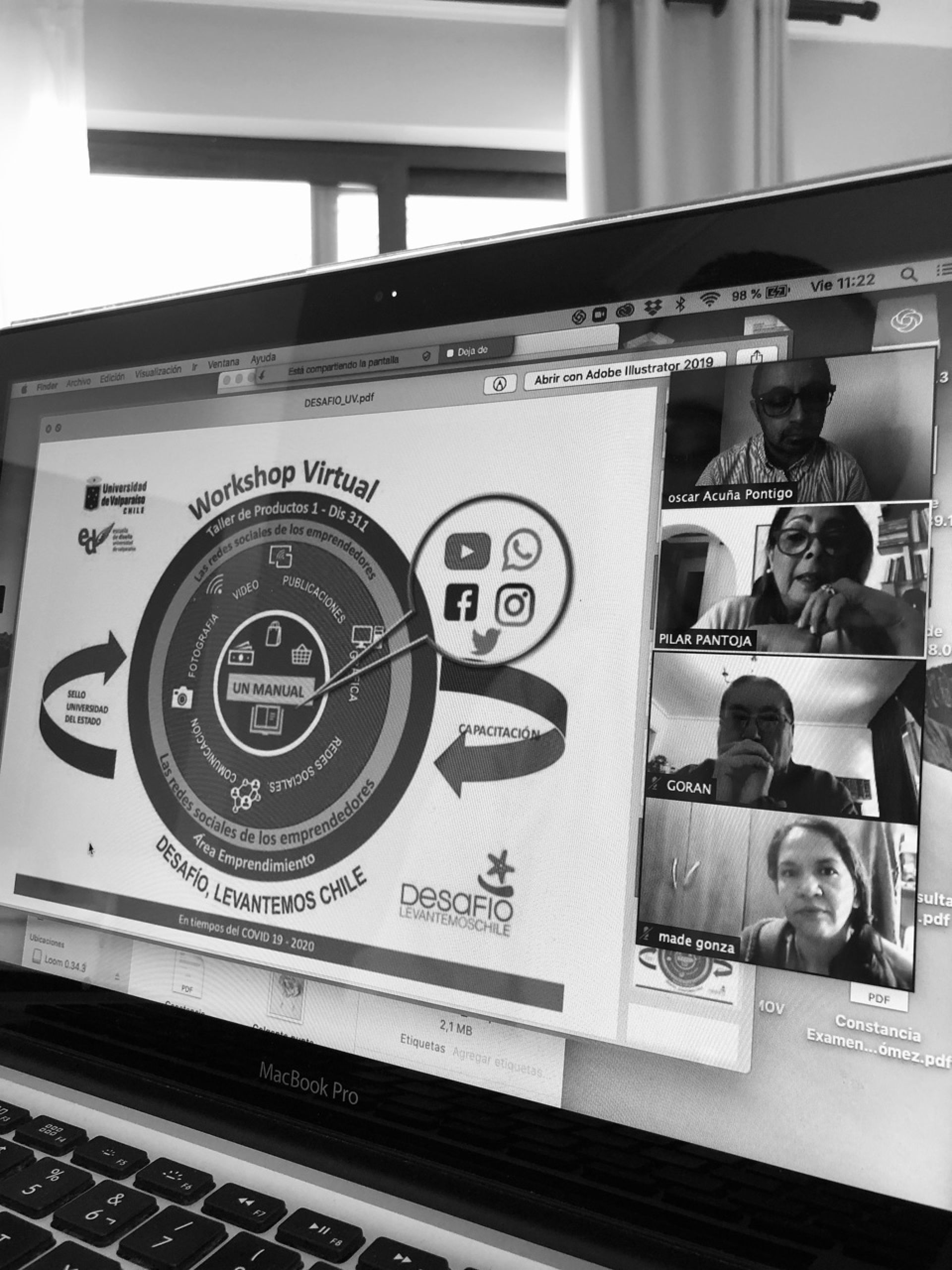 Una asesoría a veinte emprendedores del Desafío Levantemos Chile se encuentran desarrollando los académicos Pilar Pantoja y Oscar Acuña, de la Escuela de Diseño de la Universidad de Valparaíso, iniciativa que comenzó con la conferencia vía zoom “Del problema a la oportunidad, en tiempos de crisis”, que contó además con la presencia de Goran Ahumada, director de Emprendimiento, y Camilo Pérez, líder de Emprendimiento y Sostenibilidad, ambos de Desafío Levantamos Chile.