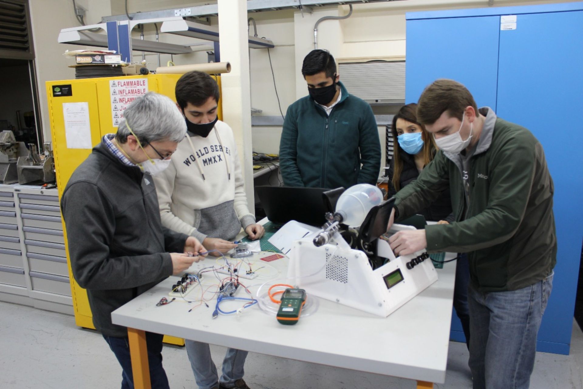 Un prototipo funcional de ventilador mecánico, cuya principal característica es que funciona sin la necesidad de contar con una cama crítica, se encuentran desarrollando un grupo de estudiantes y académicos de la Escuela de Ingeniería Civil Biomédica de la Universidad de Valparaíso en conjunto con ingenieros de la USM. La próxima semana el prototipo será sometido a una inspección en el laboratorio Certemed UV.