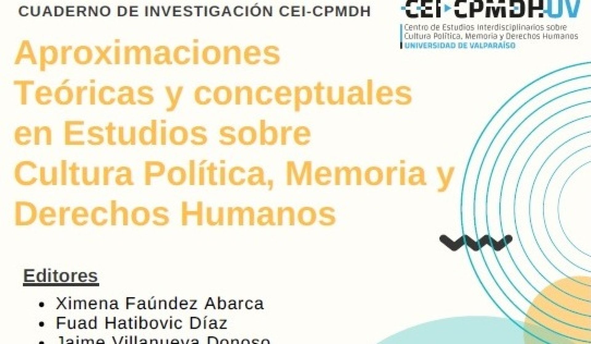 Los editores de la publicación son la doctora Ximena Faúndez, profesora de la Escuela de Psicología FACSO UV, directora e investigadora del CEI-CPMDH y directora del Proyecto Anillo SOC 180007; el doctor Fuad Hatibovic, profesor de la Escuela de Psicología FACSO UV, director alterno e investigador del CEI-CPMDH, investigador asociado Proyecto Anillo SOC 180007, y Jaime Villanueva, licenciado y magíster en Filosofía, tesista del Doctorado en Estudios Interdisciplinarios, DEI UV.