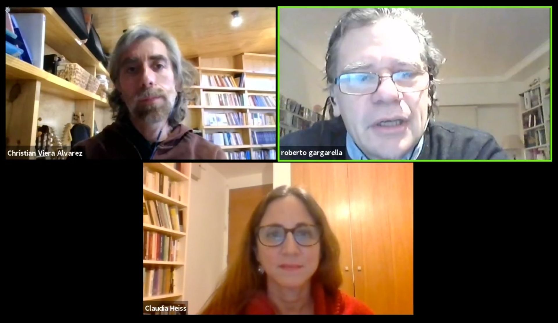 La actividad digital contó con la participación de los docentes Roberto Gargarella y Claudia Heiss.