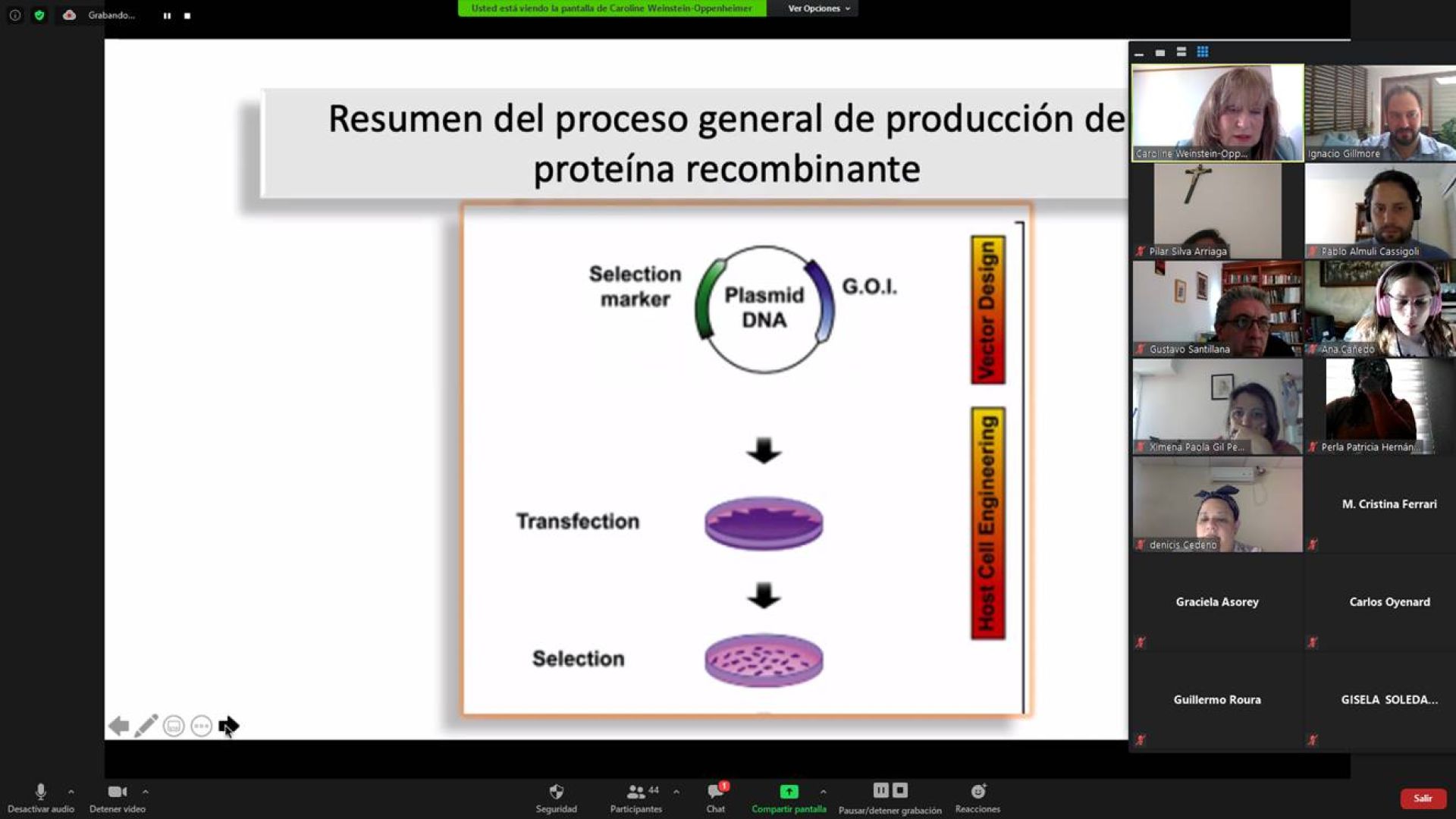 La doctora Weinstein valoró su participación de la siguiente manera: “Una gran experiencia poder divulgar los mismos conceptos que hace más de cinco años venimos entregando, a través del curso taller (de profundización profesional) ‘Medicamentos biotecnológicos: una visión global’, que este año debió ser suspendido debido a la pandemia. Pude visualizar que las preocupaciones que tenemos en Chile son comunes a países de Latinoamérica y Brasil. También sirvió de preludio a un módulo de enseñanza virtual denominado ‘Terapias biológicas y avanzadas’, que estamos preparando con las colegas Patricia Carreño, Carolina Campos, Silvia Bonilla y Patricia Acuña de la Facultad de Farmacia, en el marco del proyecto Cophela, dirigido por esta última”.