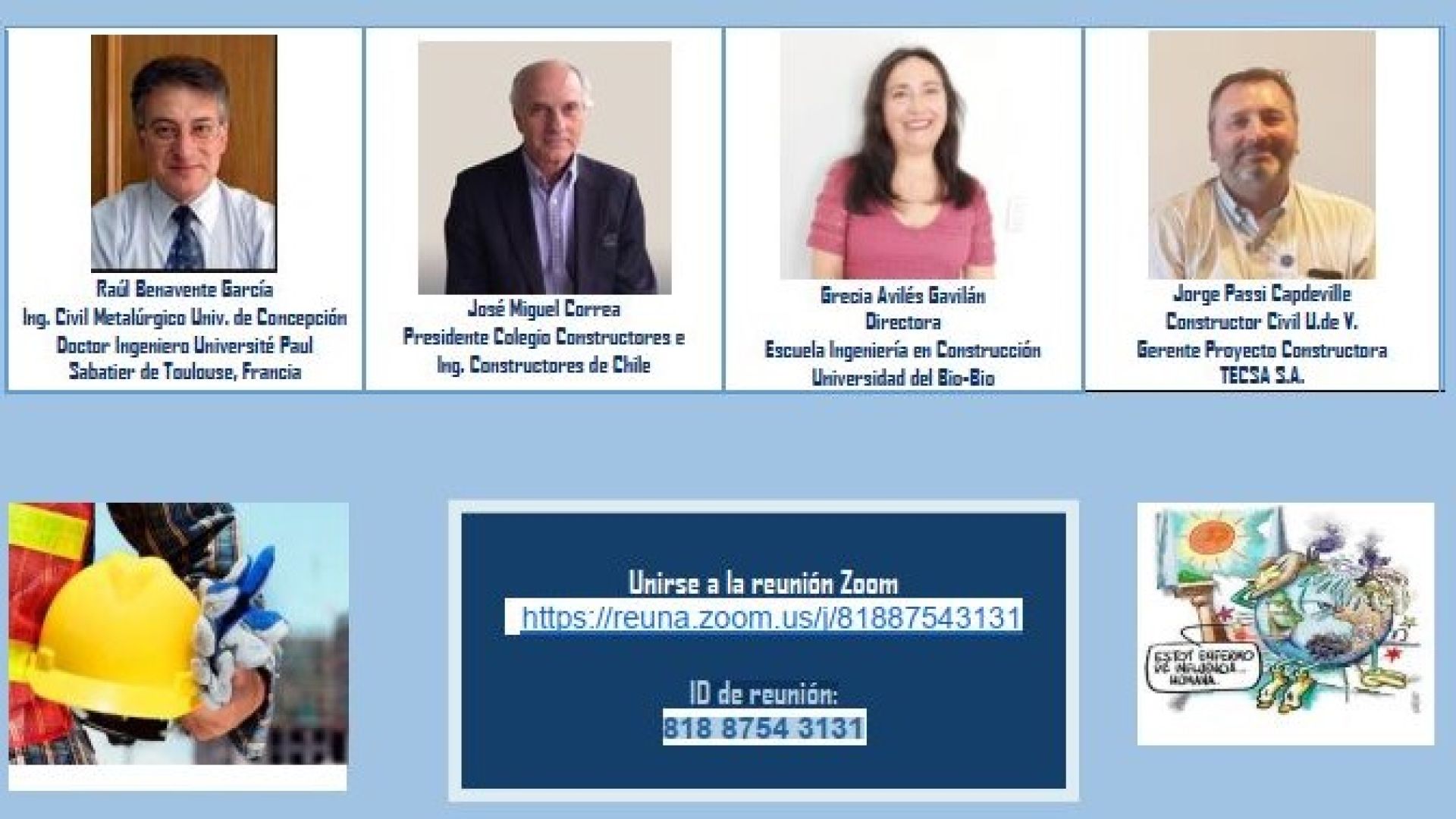 En tanto, Grecia Avilés, directora de la Escuela de Ingeniería en Construcción de la Universidad del Bío-Bío, presentará el tema “La formación en Ingeniería en Construcción”.