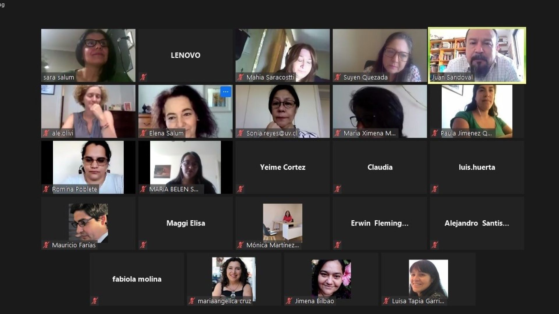 A la ceremonia de inauguración, que se realizó en formato online, asistieron el decano de la Facultad de Ciencias Sociales, Juan Sandoval; la secretaria de Facultad, María Angélica Cruz; la directora de la Escuela de Sociología, Sonia Reyes; y la directora de la Escuela de Trabajo Social, Elena Salum.