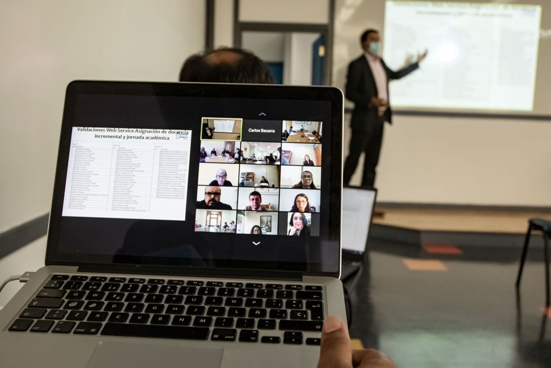 En una de las salas híbridas habilitadas por la Universidad de Valparaíso para este año académico, se desarrolló este viernes una jornada de inducción para los integrantes del equipo directivo del rector Osvaldo Corrales. La actividad contó con la asistencia de doce personas en sala y 25 conectadas online.