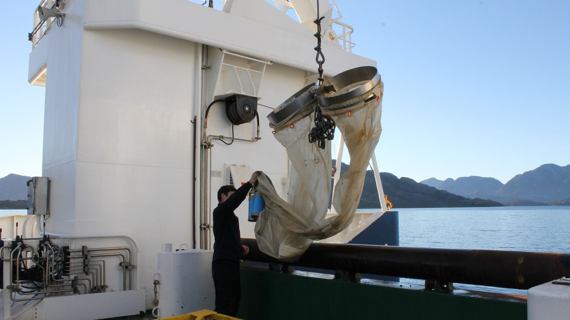 El doctor en Oceanografía Mauricio Landaeta y la doctora en Acuicultura Claudia Bustos vienen participando de estos cruceros oceanográficos a partir de los proyectos CONA, CIMAR 23 y CIMAR 24, realizados entre 2017 y 2018.