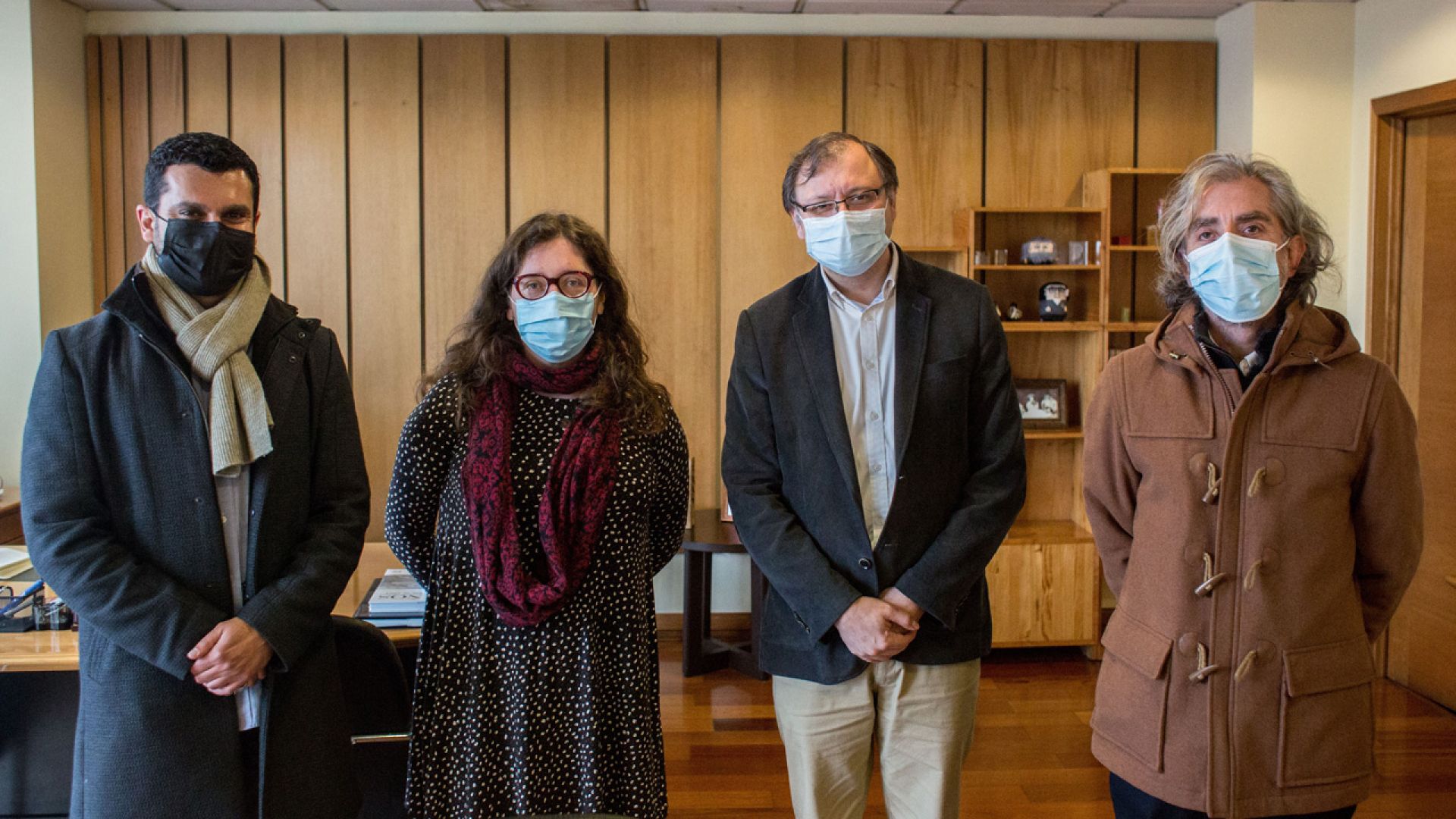 Con el objetivo de dar cuenta de sus prioridades de cara al proceso constituyente, los académicos de la Escuela de Derecho Jaime Bassa y Christian Viera, recientemente electos para la convención que redactará la nueva carta fundamental, se reunieron con el rector Osvaldo Corrales, en una cita en que participó también la secretaria general, Daniela Marzi.