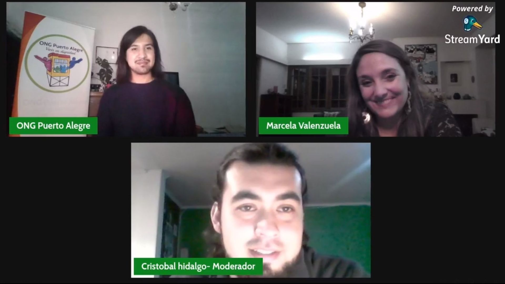 El primer conversatorio llevó por título "Cuidado Personal y Derecho de Alimentos", temática escogida luego de una encuesta realizada por la ONG con ayuda del Grupo TIPE para determinar los intereses y dudas de las comunidades con las que han trabajado. En la instancia expuso la abogada Marcela Valenzuela, jueza de Familia de Valparaíso y académica de la Academia Judicial de Chile, en una actividad moderada por Cristóbal Hidalgo -por parte del Grupo TIPE- y Mario Retamal -por parte de la ONG Puerto Alegre-.