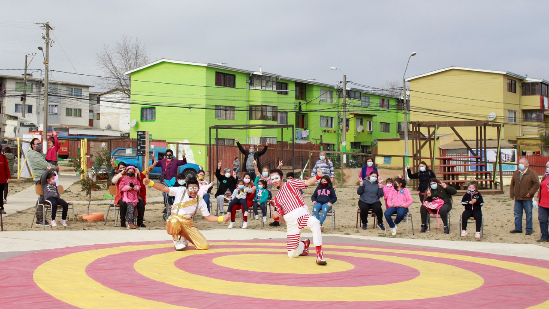 Myriam Espinoza comenta sobre su participación: “Malabicirco forma parte de Escalera Arriba por primera vez. Como equipo de Extensión decidimos que en esta ocasión teníamos que hacer reír a pobladores y pobladoras, queríamos que vibraran de alegría, entendiendo que el encierro es agotador y nos afecta a todos. Ha sido un gran acierto trabajar con ellos”.