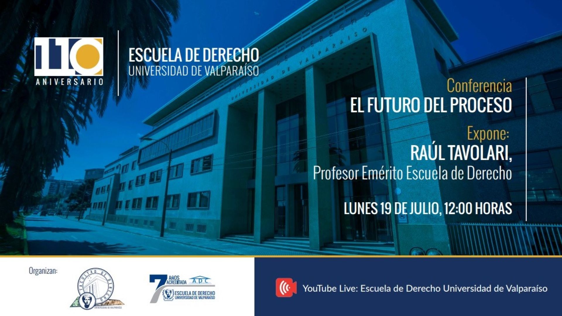 Respecto a la actividad, el decano de la Facultad de Derecho, Alberto Balbontín, detalló que “celebrar un aniversario siempre será motivo de alegría. Este año, tal como el que pasó, habremos de cumplir de un modo atípico con este rito necesario para mantener el espíritu de comunidad que nos caracteriza, aunque no por ello menos sentido. Por eso hemos querido invitar especialmente a uno de nuestros más recordados exprofesores, como es Raúl Tavolari Oliveros, quien no solo en su condición de exprofesor, sino también de exalumno, celebrará con nosotros los 110 años desde que se fundó nuestra escuela bajo el nombre de Curso de Leyes de Valparaíso. Aprovecho la ocasión, pues, para invitar a los estudiantes, profesores, funcionarios, exalumnos y exprofesores, a unirse a esta actividad, que esperamos sea una buena ocasión para encontrarnos en un abrazo virtual”.