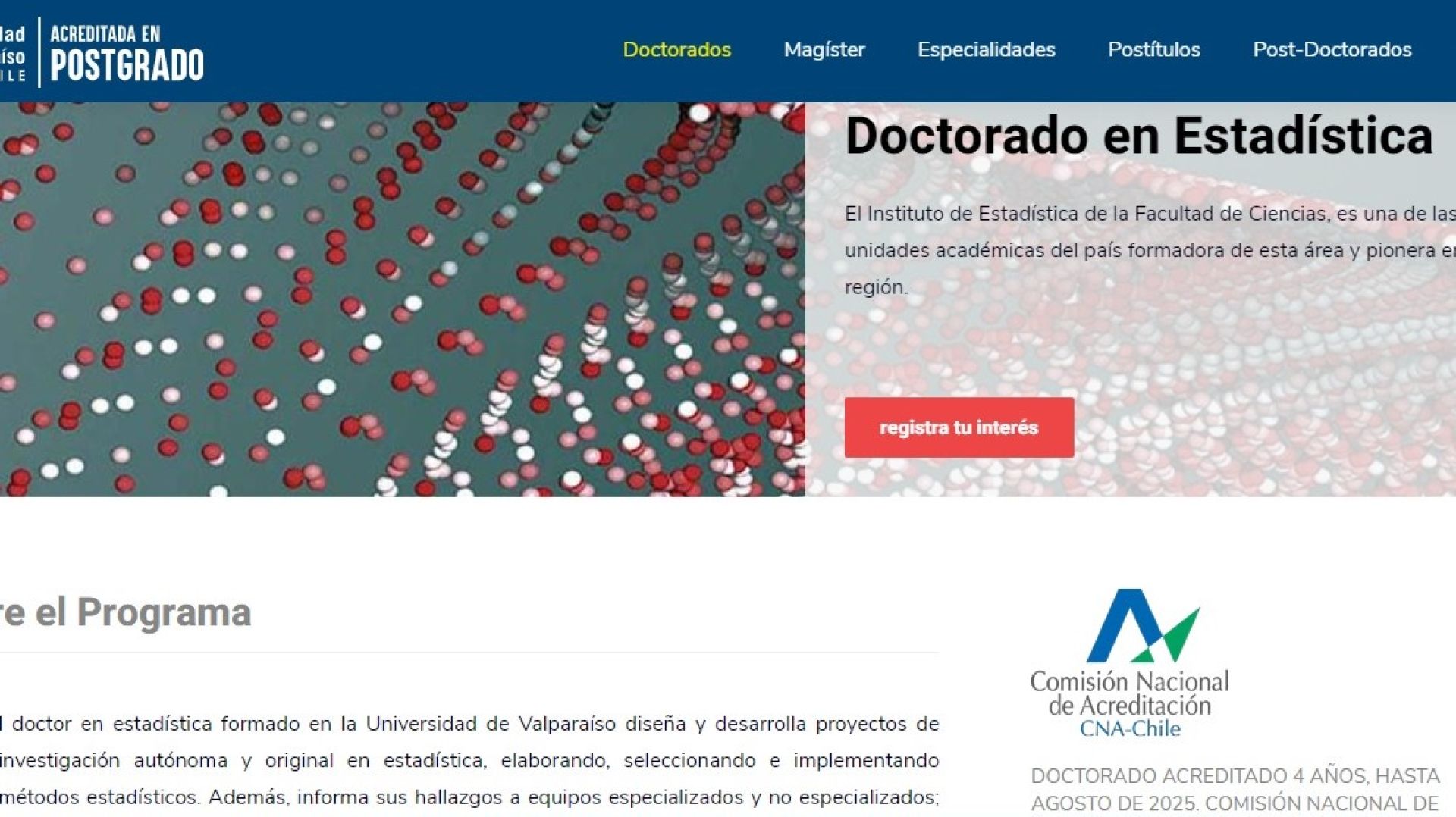 Programa de Doctorado en Estadística obtiene cuatro años de acreditación