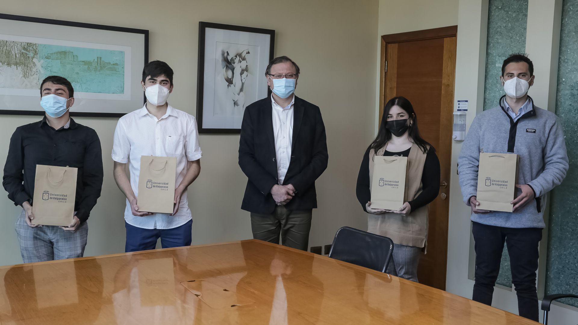 El rector Osvaldo Corrales se reunió con los estudiantes y destacó que “para nuestra institución es un motivo de orgullo, ya que tuvieron la audacia, pero también la iniciativa de presentar proyectos en el marco de esta convocatoria. Será una experiencia que va a fortalecer sus trayectorias académicas y personales, pero también va a enriquecer a la UV, porque se van a transformar en embajadores de nuestra universidad, dando testimonio del tipo de formación integral que entregamos y del conjunto de valores y virtudes que se proyectan en los programas que cada uno de ellos estudia”, agregó.