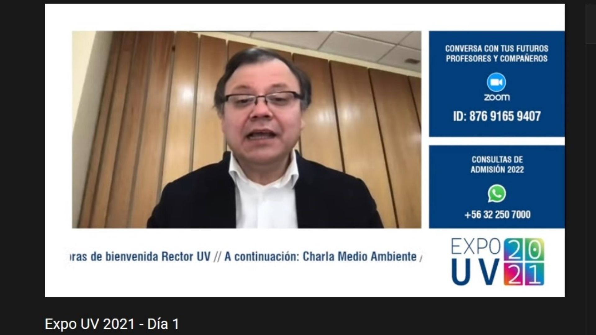 Al abrir el evento, el rector Osvaldo Corrales deseó el mejor de los éxitos a toda la comunidad universitaria involucrada en la organización y realización de la Expo UV. Asimismo, se refirió a la caída en las matrículas que ha sufrido la educación superior desde el estallido social de octubre de 2019 y la posterior pandemia de Covid-19, a lo que se suma que hay más instituciones adscritas a la gratuidad. Por ello, afirmó que el panorama ante el próximo proceso de matrículas es incierto; sin embargo, destacó su certeza de que la fortaleza de la UV es la calidad que ha demostrado en el tiempo, gracias al compromiso y al trabajo de sus académicos, académicas, investigadores, funcionarios y funcionarias, así como también de sus estudiantes.