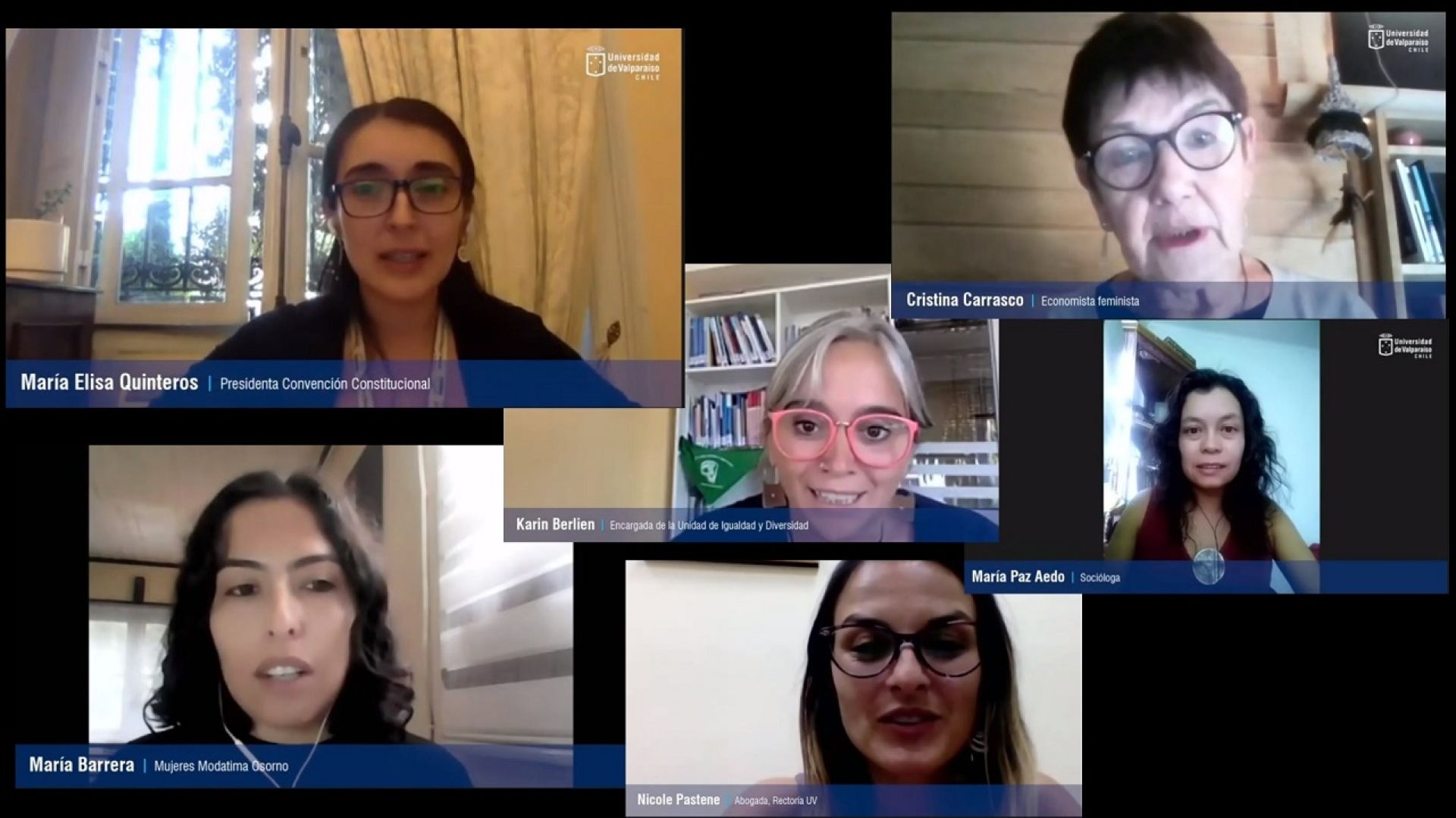 En conversatorio convocado por la Unidad de Igualdad y Diversidad de la UV y que contó con participación de la presidenta de la Convención Constitucional.
