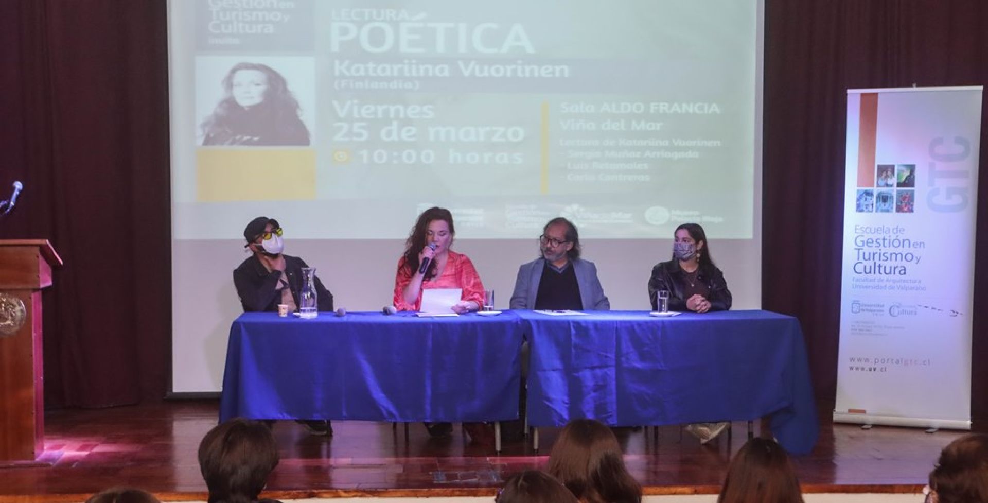 La poeta finlandesa Katariina Vuorinen fue la protagonista de una sesión de lectura poética organizada por la Escuela de Gestión en Turismo y Cultura (GTC), que se desarrolló en la sala Aldo Francia del Palacio Rioja de Viña del Mar.