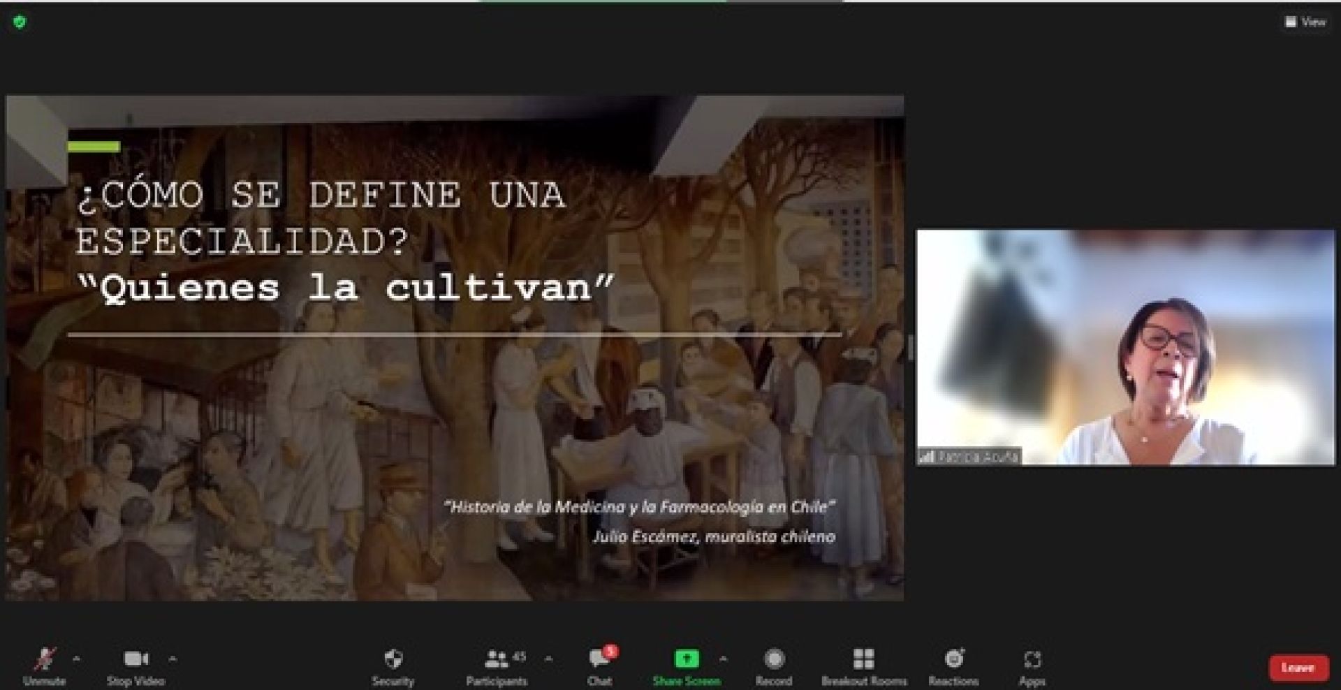 En su exposición, la profesora Acuña realizó una completa revisión documentada de la carrera, destacando los hechos más significativos para el desarrollo tanto de los procesos formativos como también para el desempeño profesional, como el reciente reconocimiento de las especialidades farmacéuticas por parte del Ministerio de Salud.