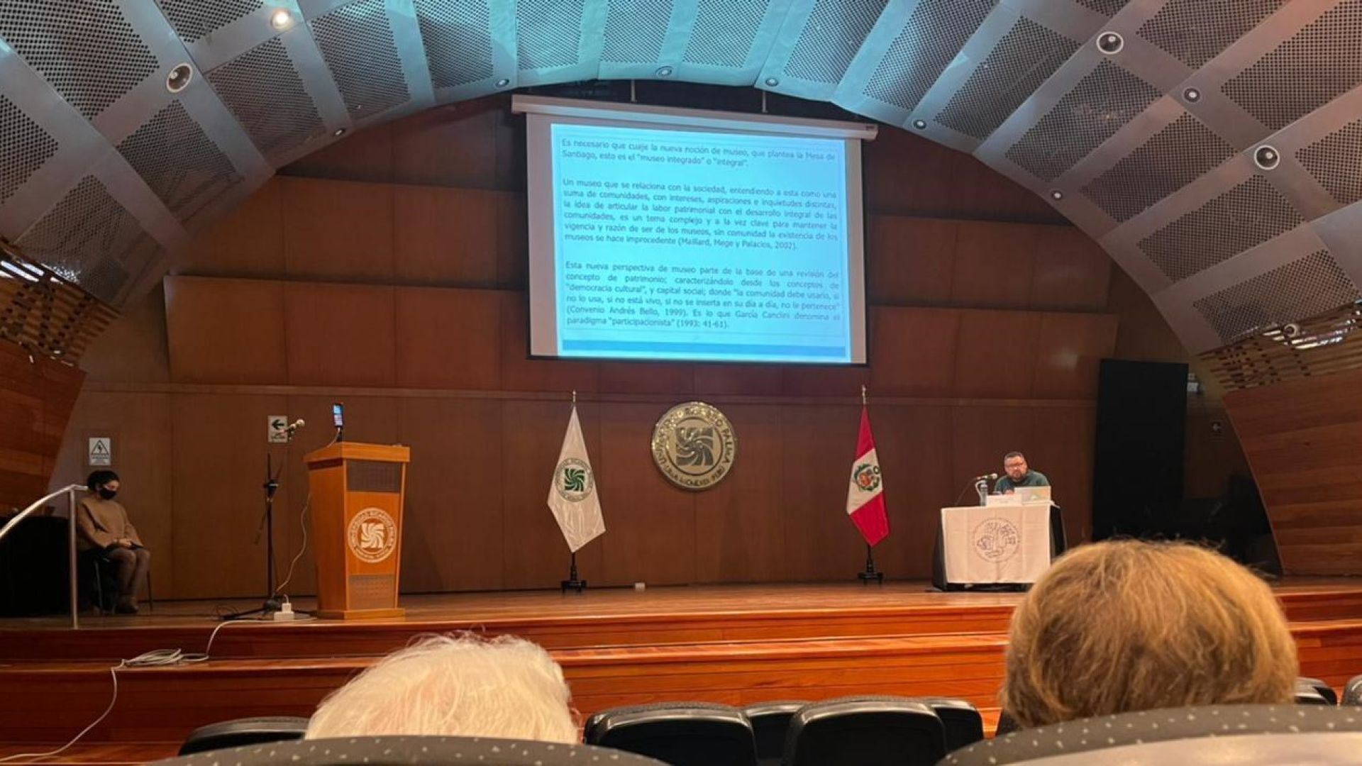 La conferencia tuvo lugar en Auditorio del Centro Cultural Ccori Wasi, en la capital peruana, y se centró en el impacto que la Mesa de Santiago de Chile, tras cincuenta años de su histórica realización, ha tenido en la reflexión y el quehacer museológico, patrimonial y la gestión cultural en los países de América Latina.