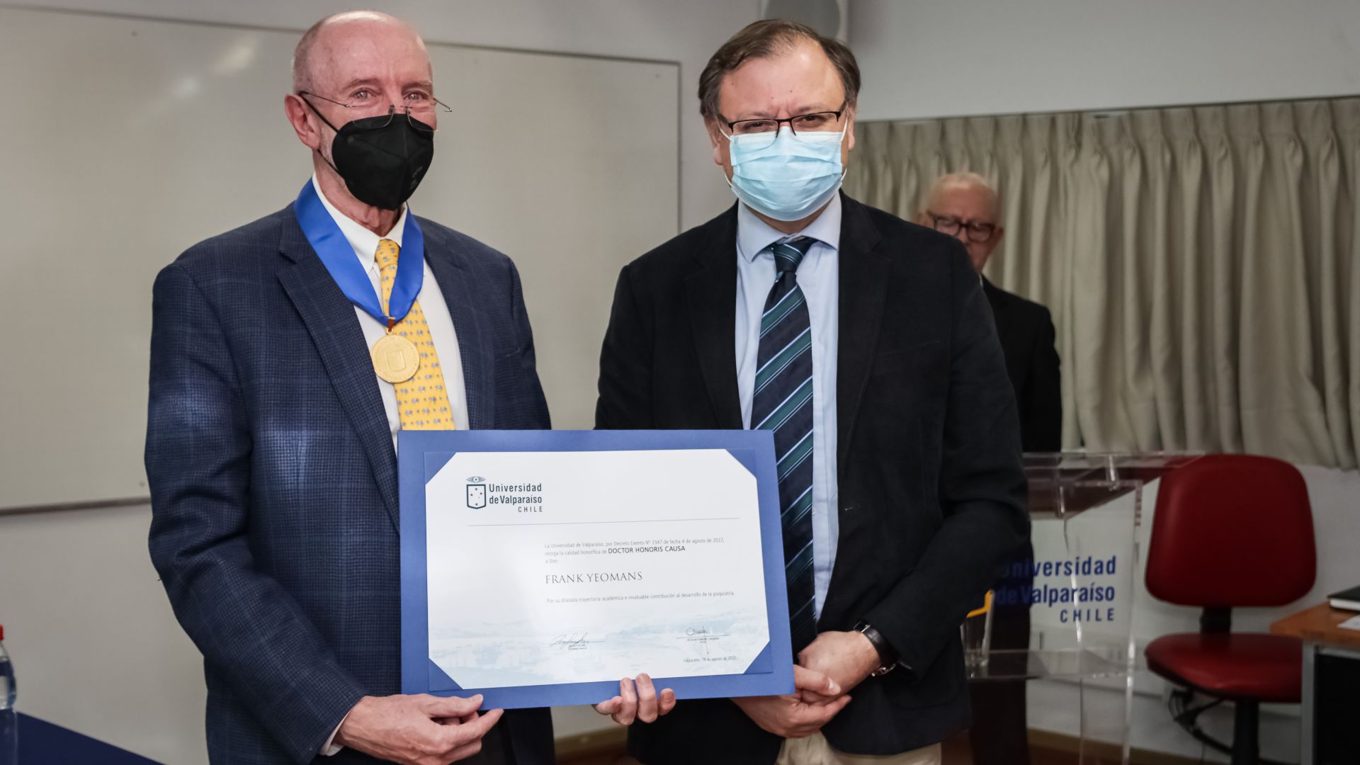 La Universidad de Valparaíso confirió el grado académico de doctor honoris causa al destacado médico psiquiatra estadounidense Frank Yeomans, uno de los principales especialistas a nivel mundial en el desarrollo, la investigación, la enseñanza y el tratamiento del trastorno límite de la personalidad o borderline, el trastorno de la personalidad narcisista y la psicoterapia focalizada en la transferencia.