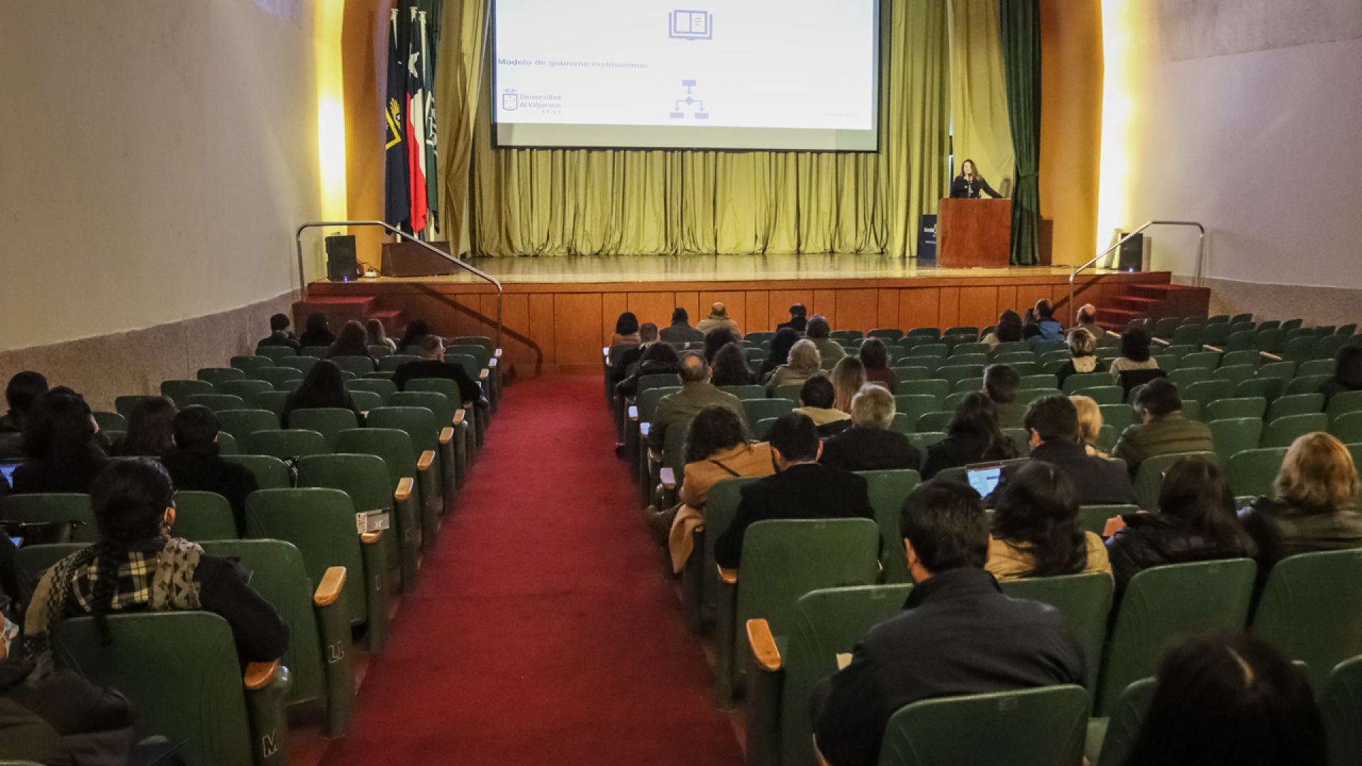 La primera parte de la jornada contó con las exposiciones de Paula Quiroz, directora de Planificación, quien dio cuenta de los resultados preliminares de la implementación del Plan de Desarrollo Estratégico Institucional 2021-2030 y de los procesos vinculados a los planes de desarrollo estratégico de facultades, escuelas e institutos; de Álvaro Jeria, director de Autoevaluación y Acreditación, con la exposición “Planes de mejora. Qué son y que no son”; y de Fuad Hatibovic, director de Análisis Institucional, quien presentó “Proyecto DataUV: hacia una plataforma unificada de visualización de información”.