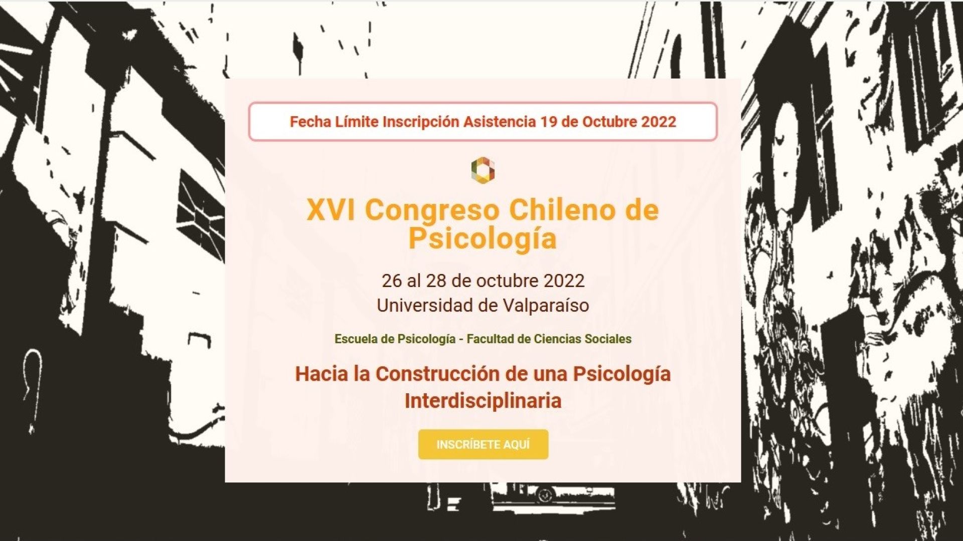 Con el lema “Hacia la construcción de una psicología interdisciplinaria”, del miércoles 26 al viernes 28 del presente mes se realizará en la Universidad de Valparaíso el XVI Congreso Chileno de Psicología, organizado por la Escuela de Psicología UV, la Facultad de Ciencias Sociales UV y la Red de Escuelas de Psicología de las Universidades Estatales (Cuech). El encuentro estuvo suspendido el 2020 y el año pasado se realizó de manera virtual, de manera que la actual versión marca el retorno a la presencialidad.