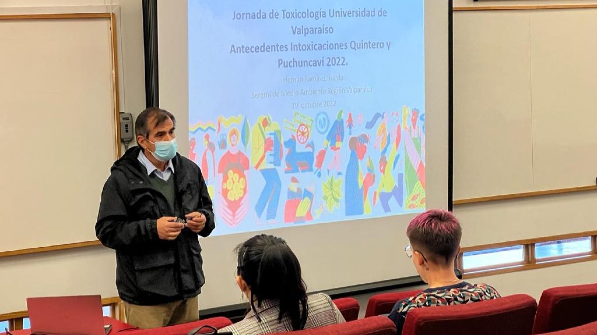 Participaron como expositores Hernán Ramírez, seremi de Medio Ambiente de la Región de Valparaíso, quien estuvo a cargo de la conferencia “Antecedentes de intoxicaciones en Quintero y Puchuncaví 2022”; Rubén Verdugo, de la División de Fiscalización y Conformidad Ambiental de la Superintendencia del Medio Ambiente, con la presentación “Los desafíos de la evaluación de cumplimiento ambiental en Chile en la perspectiva de la mirada territorial”; Hernán Gaete, investigador de la Facultad de Ciencias UV, quien expuso “Uso de herramientas ecotoxicológicas en la evaluación ambiental de zonas impactadas por actividades antrópicas”; Patricia Cerda, del Departamento de Epidemiología del Ministerio de Salud, a cargo de la conferencia “Plan de Vigilancia Epidemiológica Ambiental ”; Pablo Olivares, jefe de Asuntos Regulatorios de SQM, quien presentó la charla “El riesgo de no comprender el riesgo”; y María Fernanda Cavieres, quien expuso “La importancia de la evidencia científica para la toma de decisiones regulatorias. El caso de la zona de sacrificio en la Bahía de Quintero-Ventanas”.