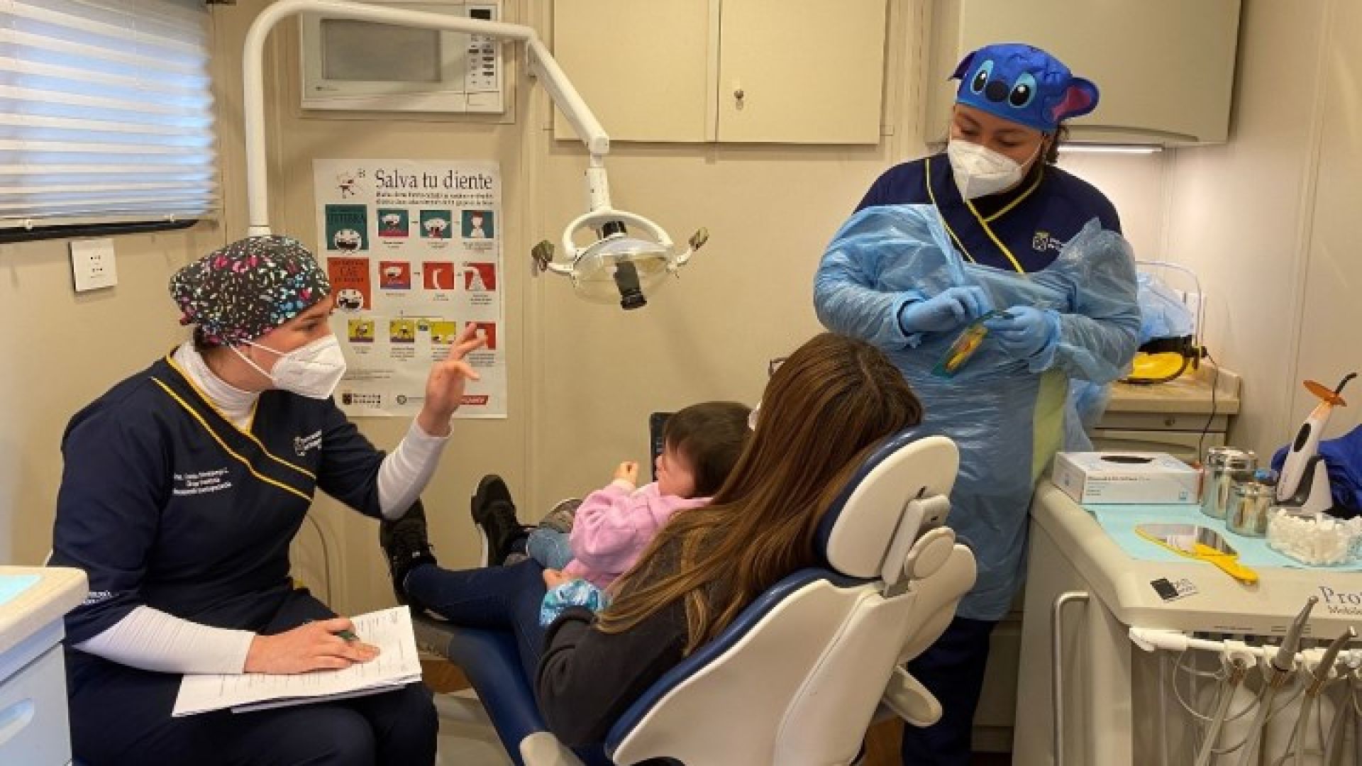 “Las residentes de la especialidad de Odontopediatría cumplen con el perfil para la atención odontológica de niños menores de cinco años, que requieren de tiempo y diversas formas de comunicación para otorgar su confianza, en especial aquellos que presentan grave daño en su dentición por caries temprana, asociada a condiciones de vulnerabilidad. La totalidad de los niños atendidos aceptaron el examen de su boca, la enseñanza del cepillado y en un caso, tratamiento con anestesia local, sin rechazo ni llanto alguno, lo que fue muy apreciado por sus padres y cuidadores”, precisó la directora de la Clínica de Odontología Pediátrica y del Adolescente.