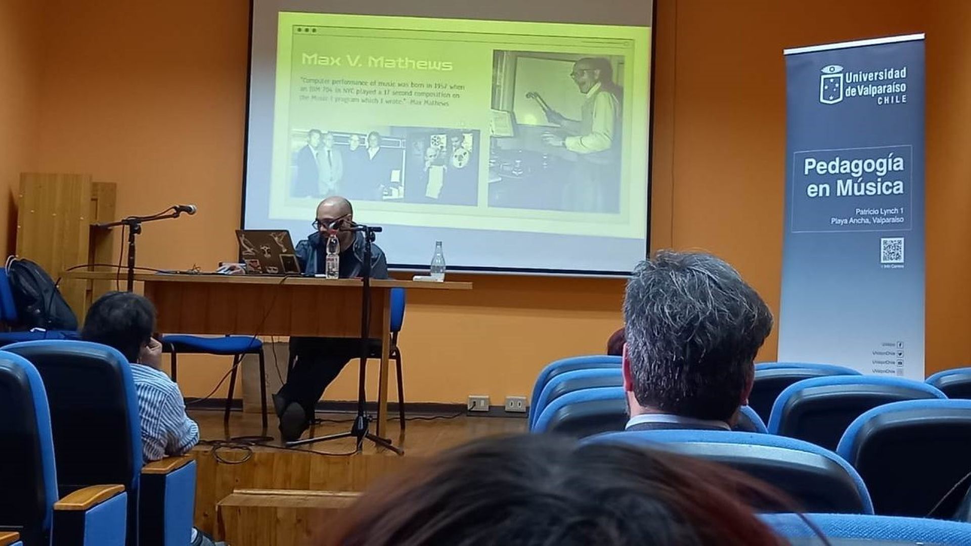 Palacios valoró la presencia al inicio de las jornadas de “Rodrigo Álvarez, un invitado de la Universidad de Concepción, profesor de prácticas de música popular y de jazz, que vino a lanzar su libro de armonía; es un invitado que nos llena de orgullo tener, por su experiencia de clases de armonía para pedagogos. También estuvo Diego Henríquez, ingeniero y músico, exestudiante de nuestra antigua licenciatura, que realiza un trabajo de investigación en torno a la música generada por computadores, utilizando un programa muy interesante que es el SuperCollider”.