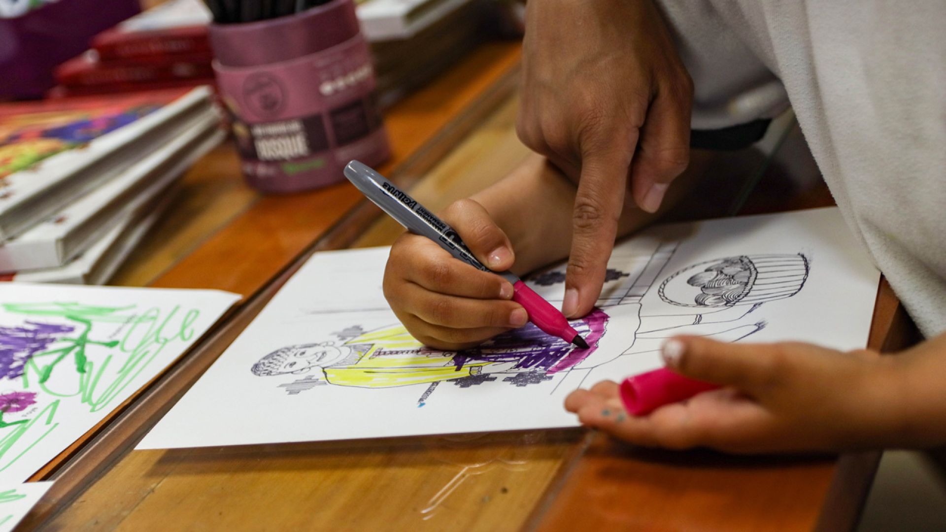 La colaboración se inició el año pasado, cuando la también investigadora del Centro Interdisciplinario de Neurociencias de la Universidad de Valparaíso, visitó la casa de la reconocida artista, en Ashland, Oregon (Estados Unidos). En esa instancia conversaron sobre arte, justicia social y educación. Allí la doctora Whitlock conoció el proyecto de Betty La Duke de convertir sus cuadernos de bocetos en libros para colorear para niños. Sus dibujos fueron inspirados por sus numerosos viajes a través del mundo, incluido América Latina, registrando la lucha por la justicia social y la vida de los pueblos indígenas.