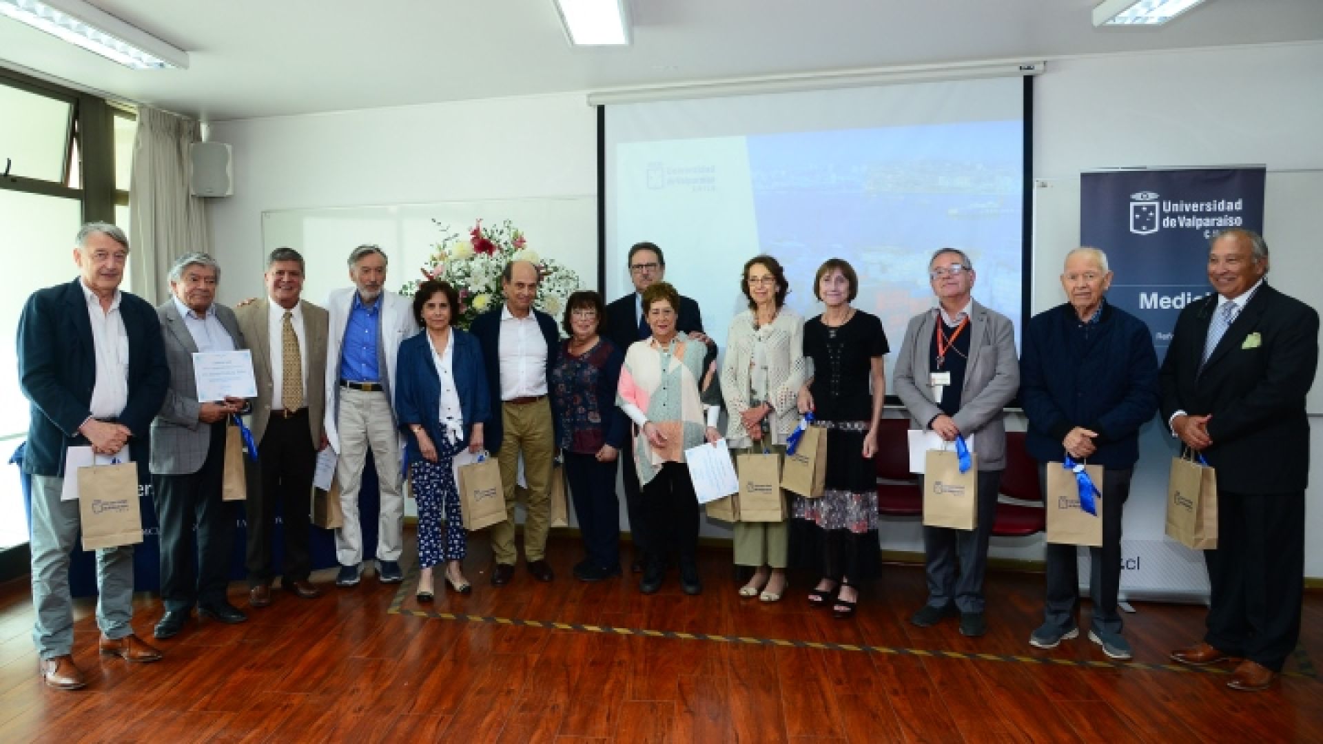 La ceremonia de homenaje permitió reunir a catorce de los veintisiete médicos pertenecientes a la generación de 1972, entre quienes figuró el doctor Antonio Orellana, actual decano de la Facultad de Medicina de la UV.