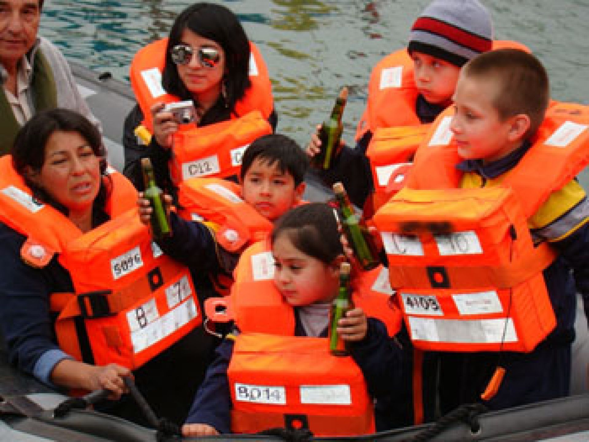“Los niños, después de haber visto un video donde nosotros les explicamos los efectos de la contaminación en los recursos y en las riquezas de nuestro océano, plasmaron sus sueños en un papelito, y ahora se dirigen al mar para arrojarlos en una botella”, señaló el estudiante Iván Melillán.