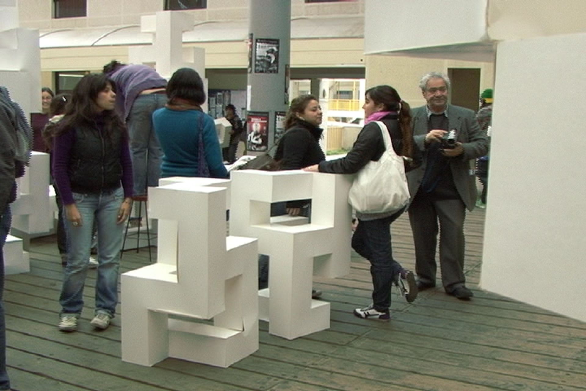“La arquitectura está inserta en un contexto que es común al de todas las actividades creativas de las artes; entonces, durante el año, los grupos de taller presentan distintas cosas, sobre todo contemporáneas. Por eso ahora mostramos música contemporánea en vivo, pintores, trabajos de profesores que han ganado concursos; el curso finaliza con esta actividad concreta, que es la coordinación del montaje de estas figuras espaciales en la Escuela”, explicó el académico Sergio Acevedo.