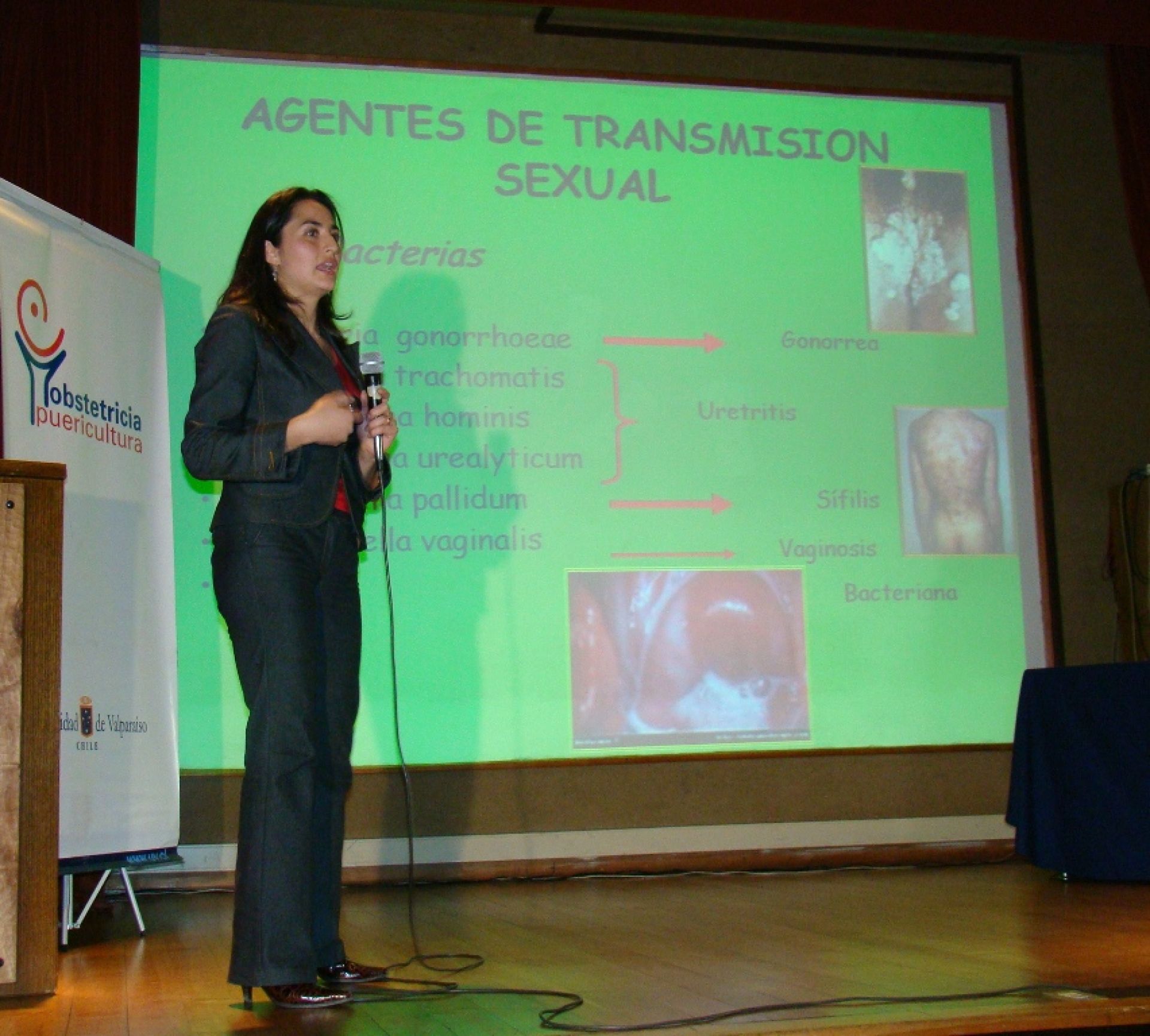 La especialista asistió a la Escuela de Medicina de la UV para hablar sobre el tema con estudiantes y docentes de la carrera de Obstetricia y Puericultura, como parte de las actividades de celebración del Día de la Matrona este 31 de agosto. La profesional recomendó a los estudiantes mantener una preocupación permanente frente a cada patología, evitando el contacto sexual con personas que se encuentran en riesgo de padecer una ITS.