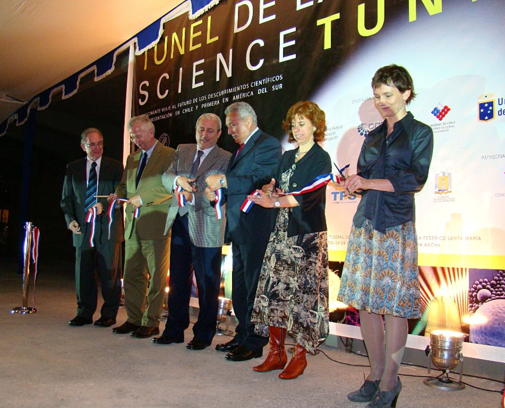 Vivan Heyl, presidenta de Conicyt, indicó que “tener esta exposición, que sale por primera vez a Latinoamérica, y ser el primer país que la recibe, que la tenemos en una región y que va a estar abierta a toda la comunidad de la región y del país en forma gratuita por dos meses, es un gran logro, que está dentro de la celebración de lo que es nuestra Semana Nacional de la Ciencia y la Tecnología”. Añadió que co el Túnel de la Ciencia se alcanza el objetivo de “acercar el conocimiento científico, el desarrollo científico, a la comunidad en general; acercar a los distintos actores, y sentir que el quehacer, el desarrollo y el esfuerzo del país, en la ciencia, la tecnología y la innovación, tiene que ver con la calidad de vida de todos”.