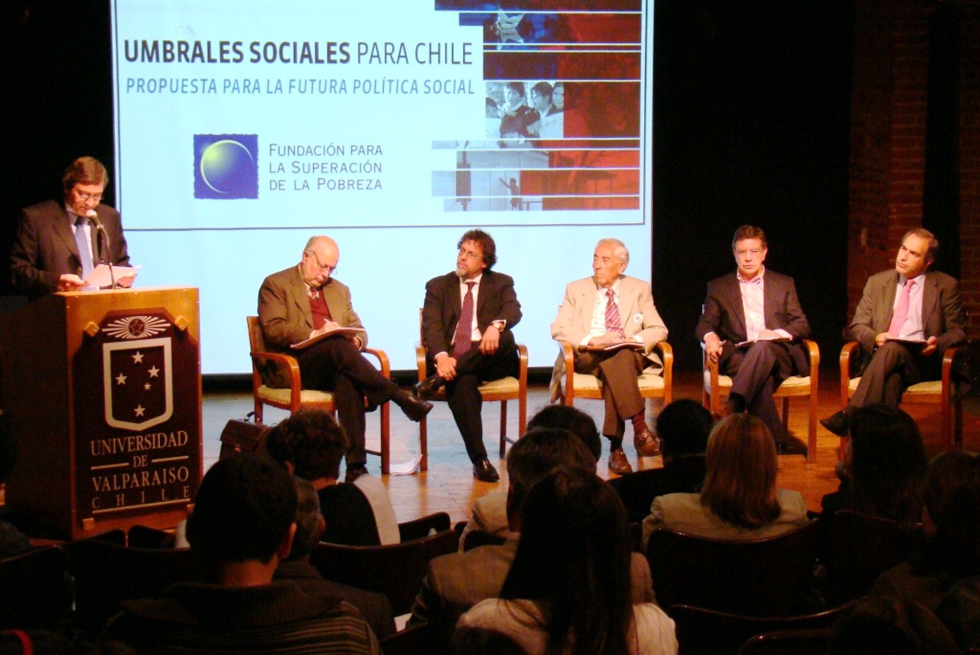 La Fundación para la Superación de la pobreza (FSP) entregó este jueves en la sala Rubén Darío del Centro de Extensión de la UV el texto “Umbrales sociales para Chile. Propuestas para la futura política social”. En la ocasión, los candidatos al Senado por la Quinta Región Costa, Francisco Chahuán, Juan Guzmán Tapia, Ricardo Lagos Weber, Joaquín Lavín y Raúl Silva Vergara, recibieron la publicación y comentaron la propuesta en la que se desarrollan ampliamente 36 garantías sociales para todos los chilenos, en especial para los más vulnerables.