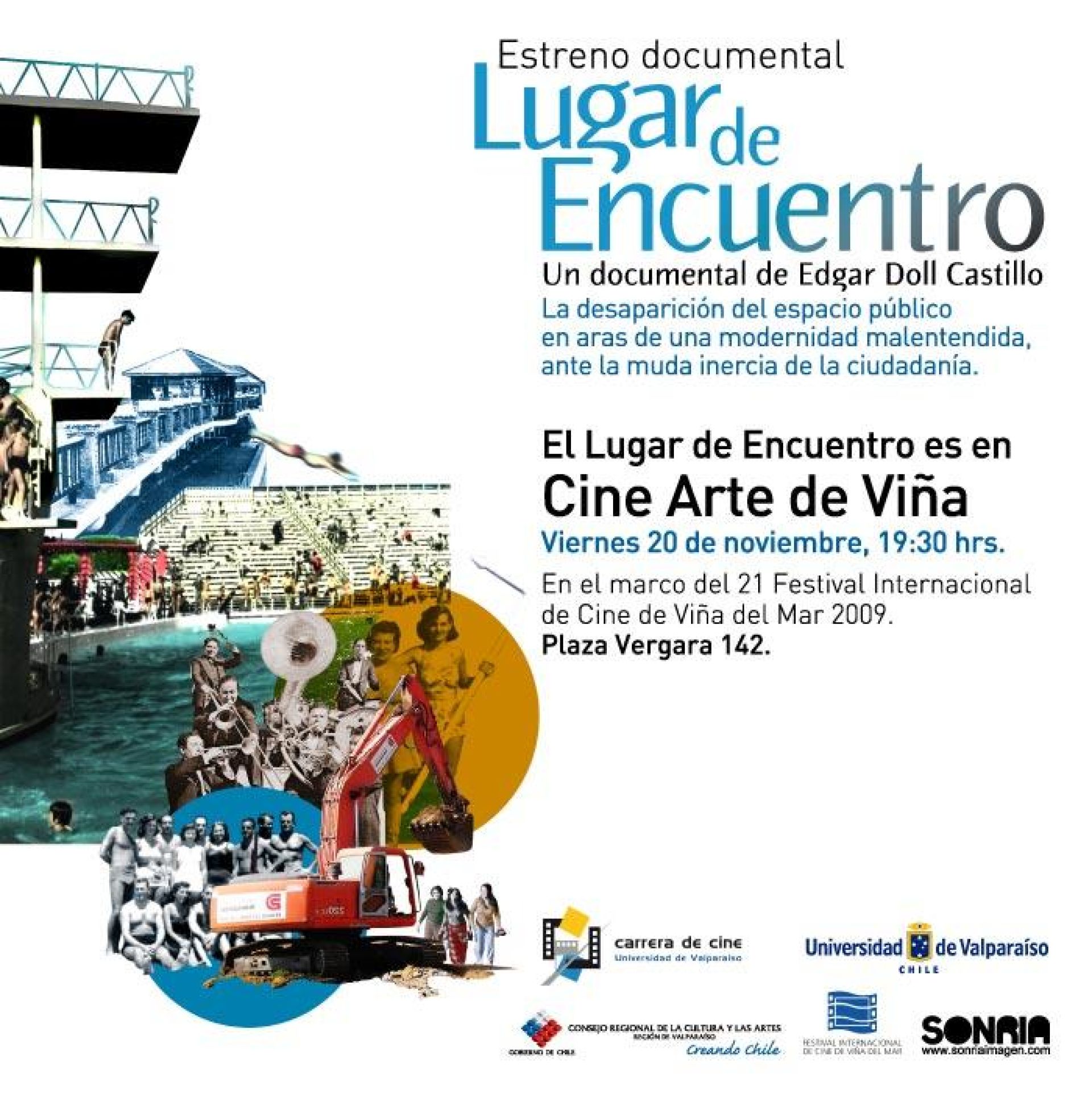 En el marco del XXI Festival Internacional de Cine de Viña del Mar, este viernes 20 de noviembre, a las 19:30 horas, se presenta en el Cine Arte de la Ciudad Jardín el documental “Lugar de encuentro”, del director Edgar Doll, académico de la carrera de Cine de la Universidad de Valparaíso. La película fue ganadora del Festival de Cine Emergente de Concón, en la categoría documental.