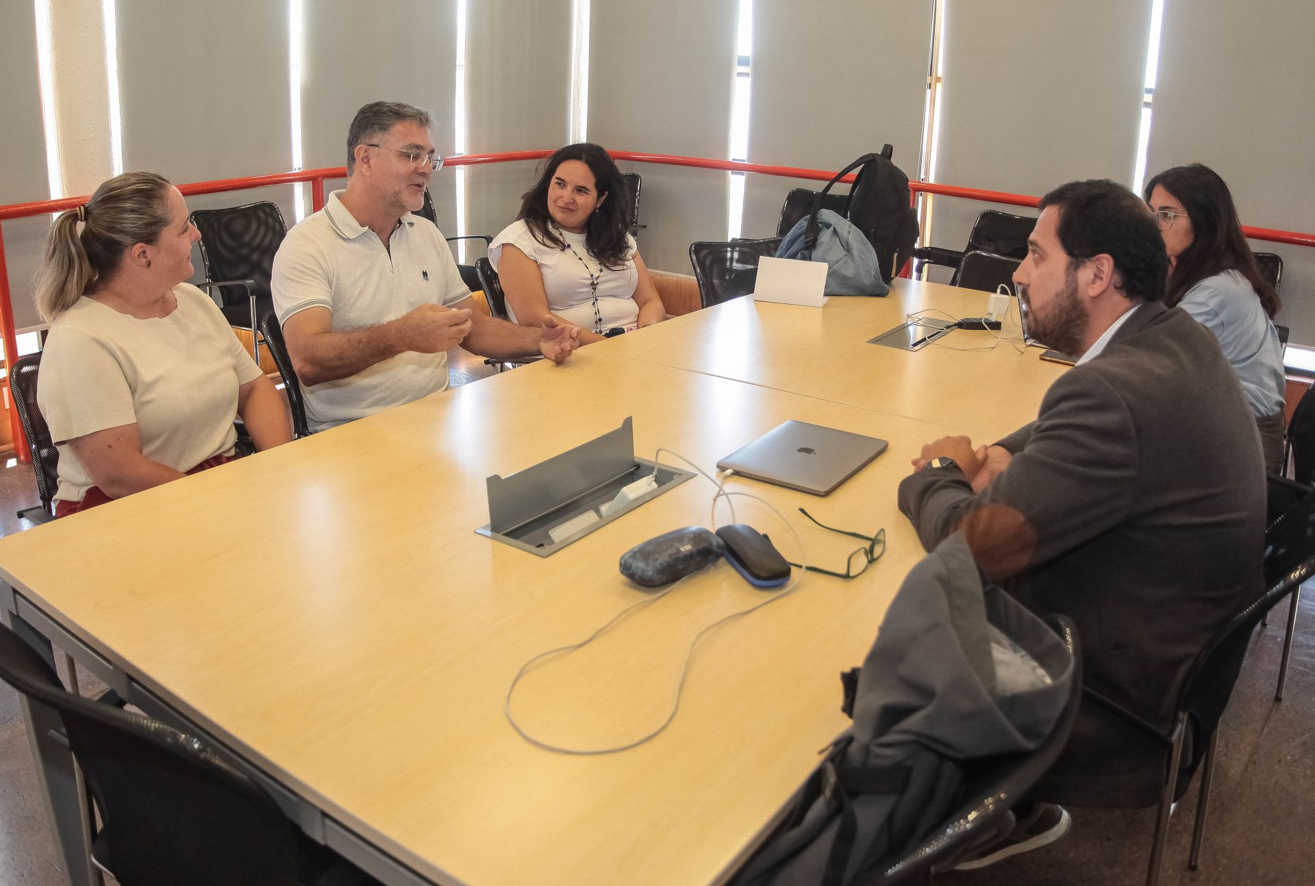 La visita de los investigadores brasileros finalizó con una reunión con Viviana García, directora ejecutiva de Gerópolis; José Luis Meza, director de Relaciones Institucionales UV, y Carol Altamirano, coordinadora de Alumni UV.