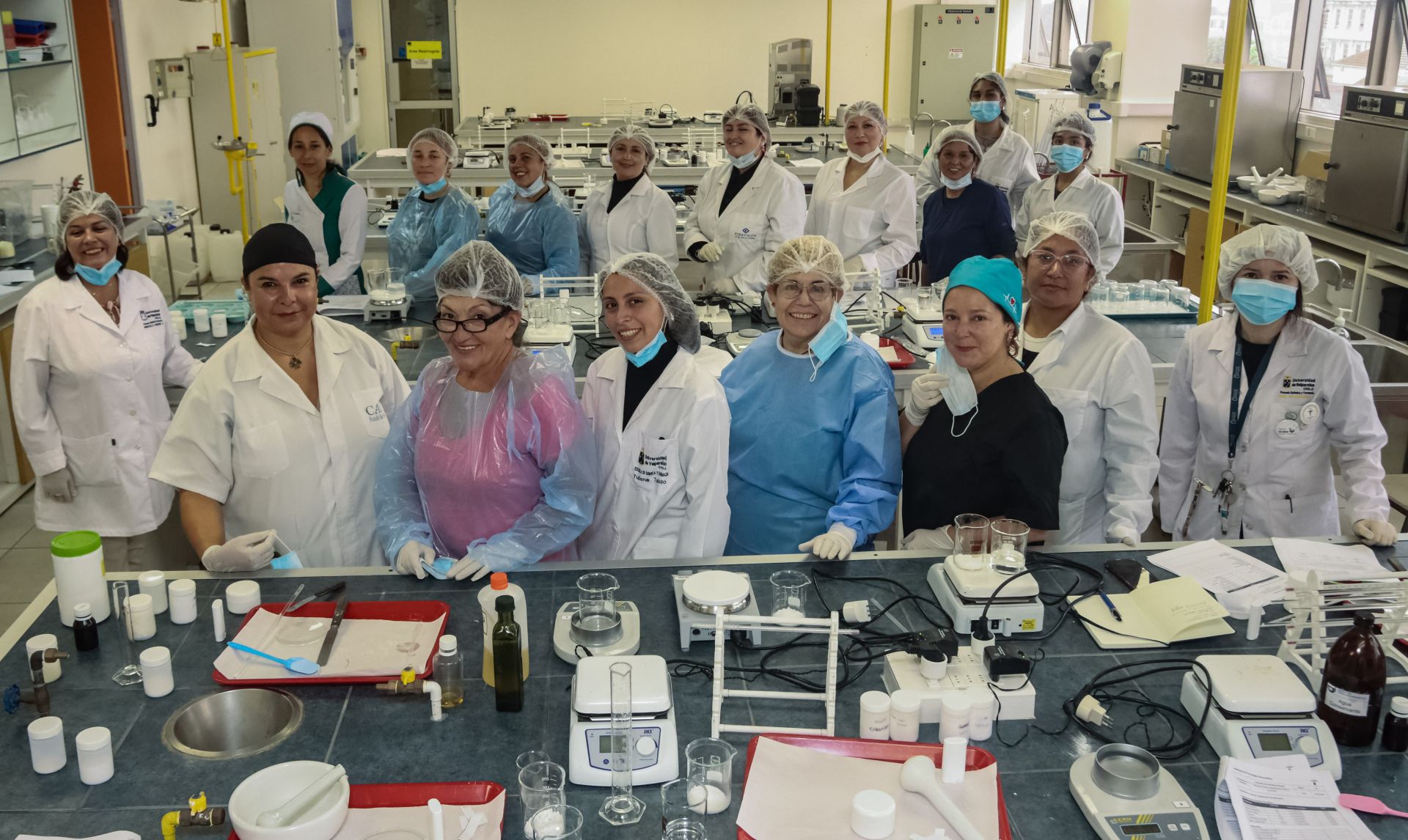 Cerca de quince empresarias de la Asociación Gremial Arcos Quinta Región AG, provenientes de diversas comunas de Valparaíso, participaron en una jornada de formación en los laboratorios de docencia de la Facultad de Farmacia de la Universidad de Valparaíso, orientada a mejorar sus procesos productivos y cumplir con normativas sanitarias vigentes, en el marco del proyecto titulado “Modelo sostenible de colaboración multidisciplinario para la asesoría técnica y comercial de pequeños productores en la región de Valparaíso: Caso cosmética artesanal”.