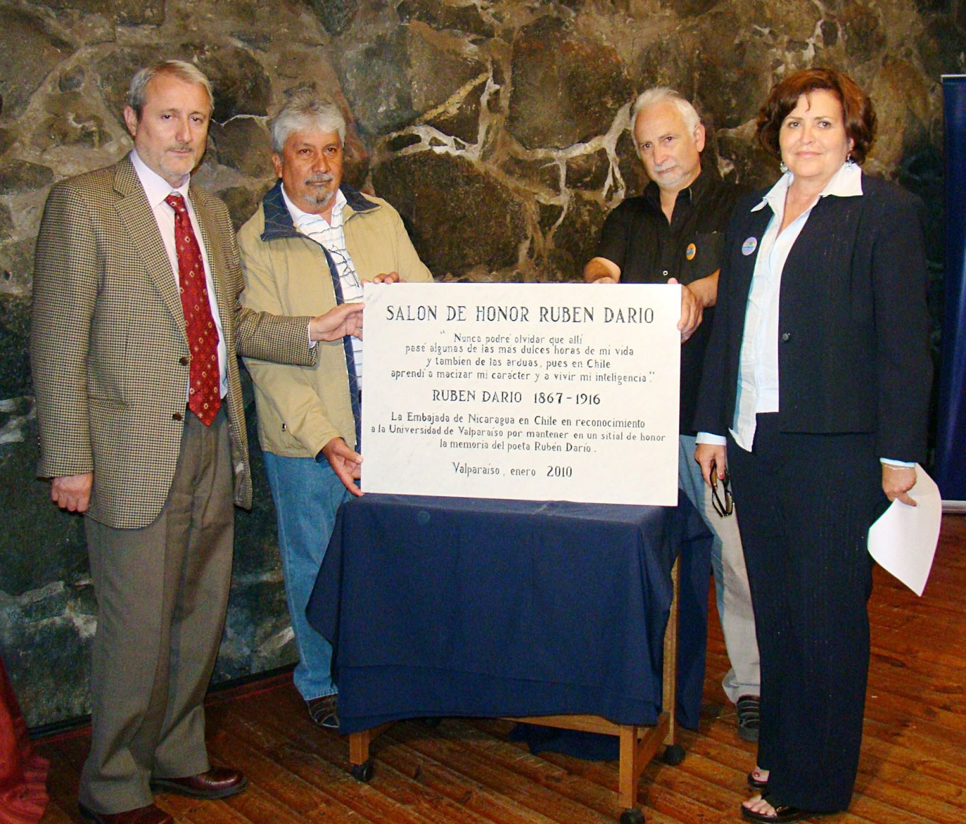María Luisa Robleto participó como la guía principal del recorrido “La Ruta de Rubén Darío”, que sigue los pasos que dio el poeta por Valparaíso. Iniciado a la salida del ascensor Concepción, el recorrido concluyó en la Aduana vieja, y fue clausurado la noche del jueves, en el Centro de Extensión de la Universidad de Valparaíso. Allí, la diplomática obsequió una placa recordatoria enviada por el gobierno nicaragüense a la UV, como demostración de gratitud por llamar a su sala de teatro, importante espacio de difusión de la cultura, con el nombre del poeta.