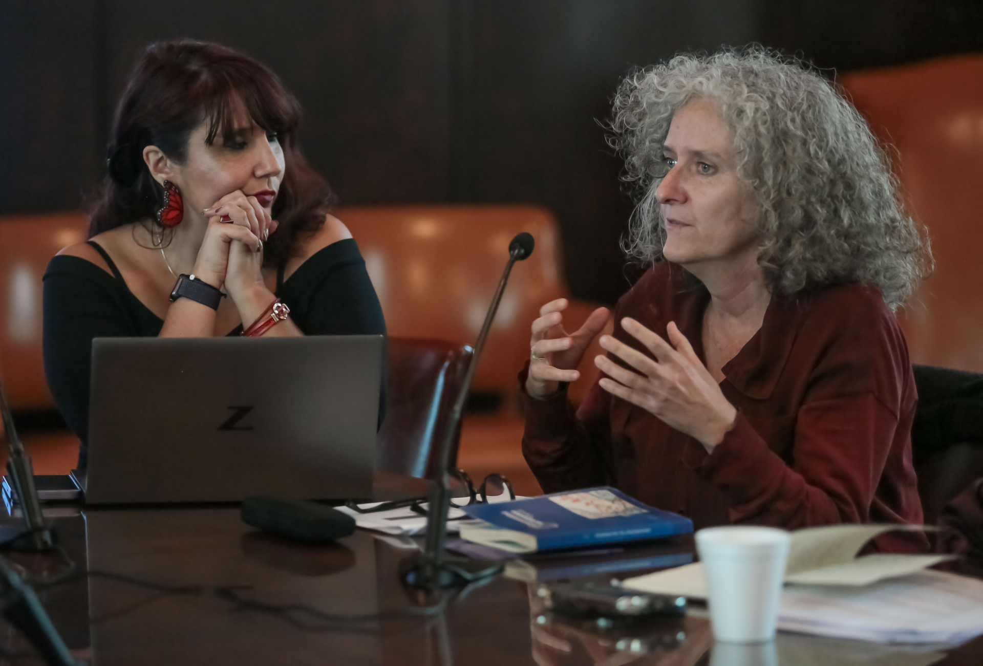 Comentaron el boletín y reflexionaron en torno a los desafíos actuales en materia de género la académica de la Escuela de Sociología, Alessandra Olivi; la delegada regional de las Mujeres del Mar y Actividades Conexas de la región de Valparaíso, Maritza Hazard; la seremi de la Mujer y Desarrollo Social, Claudia Espinoza, e Inés Robles, directora de la Escuela de Derecho y directora del programa Mujeres, Derechos y Ciudadanía, quien tuvo la responsabilidad de moderar el encuentro, enfatizando la relevancia de espacios académicos para discutir y promover la agenda de género, así como la necesidad de una formación jurídica con perspectiva de género.