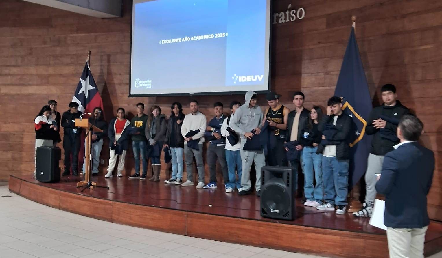 A través de un gesto simbólico, las y los estudiantes de primer año recibieron obsequios entregados por sus compañeros y docentes, lo que marcó su incorporación oficial a la comunidad del IDEUV.