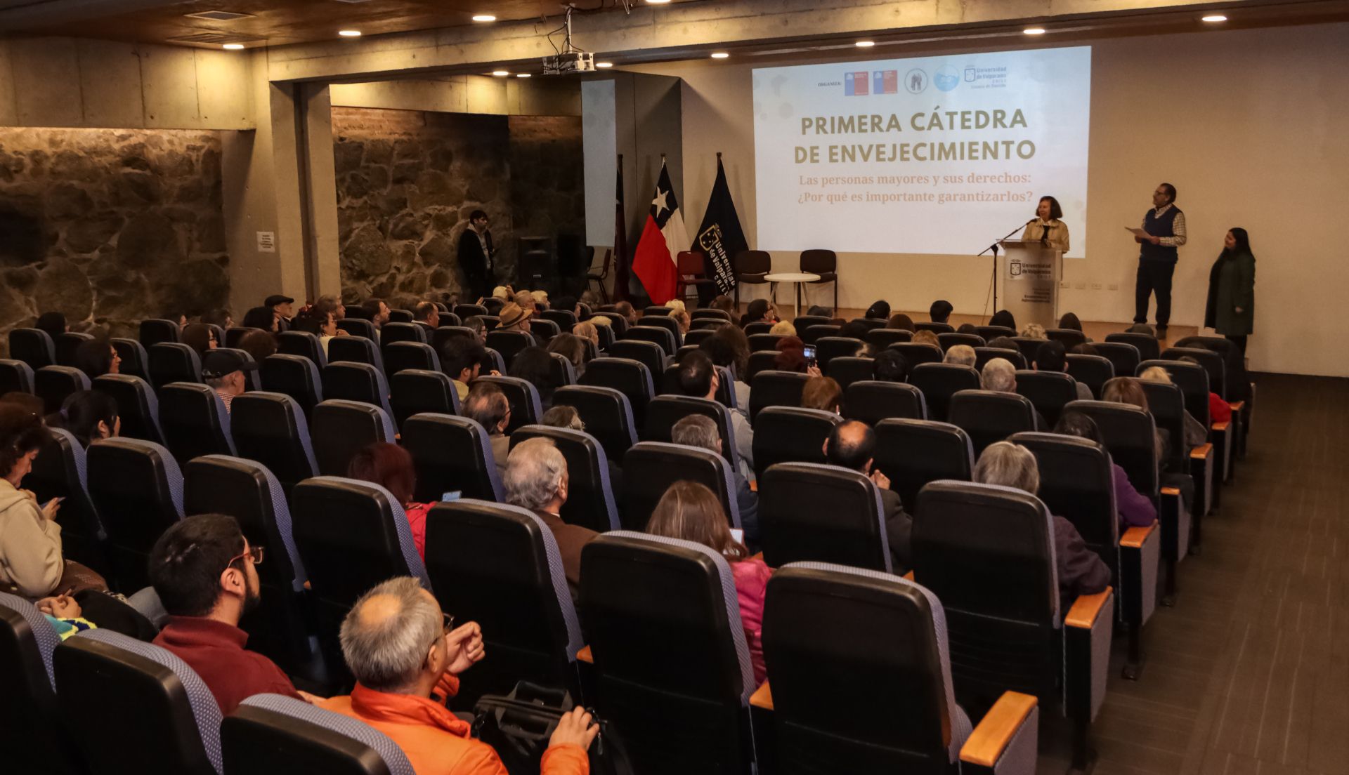 Bajo el título “Las personas mayores y sus derechos”, la cátedra fue inaugurada por la vicerrectora de Vinculación con el Medio de esta casa de estudios, Paulina Gundelach. También estuvieron presentes la directora nacional del Senama, Claudia Asmad; la presidenta de la Mesa Coordinadora, Soledad Carvallo; la directora ejecutiva de Gerópolis, Viviana García, y la secretaria regional ministerial de Desarrollo Social y Familia, Claudia Espinoza, entre otras autoridades.